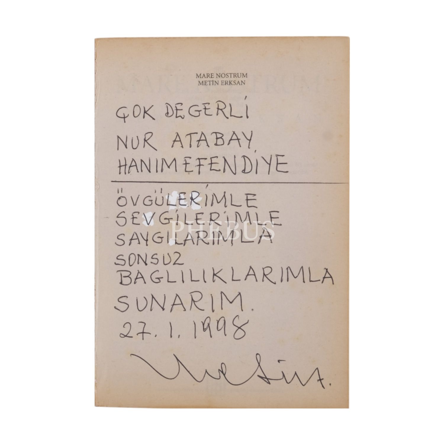 "Çok değerli Nur Atabay Hanımefendiye övgülerimle, sevgilerimle saygılarımla sonsuz bağlılıklarımla sunarım" ithafıyla, 27 Ocak 1998 tarihinde imzalanmıştır.