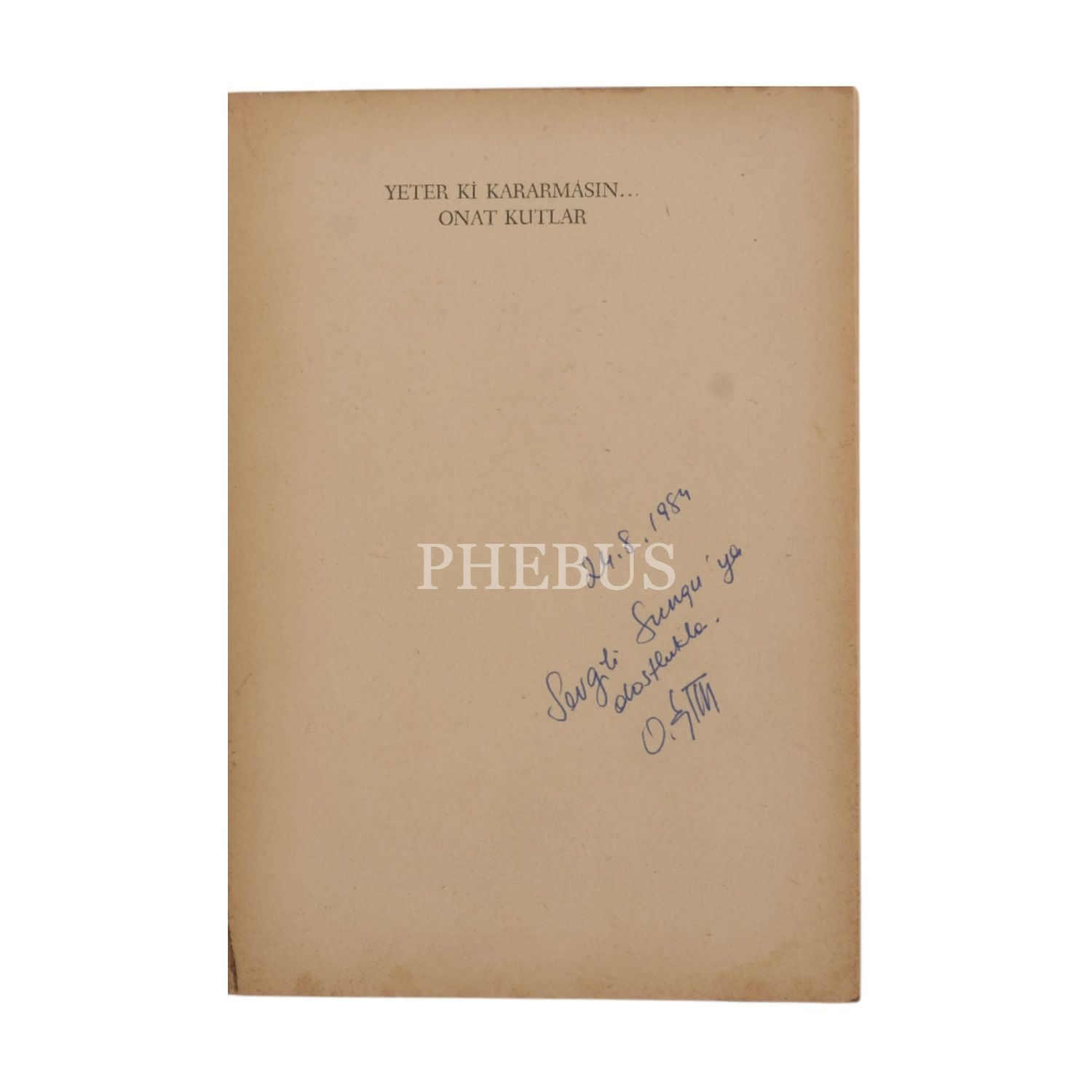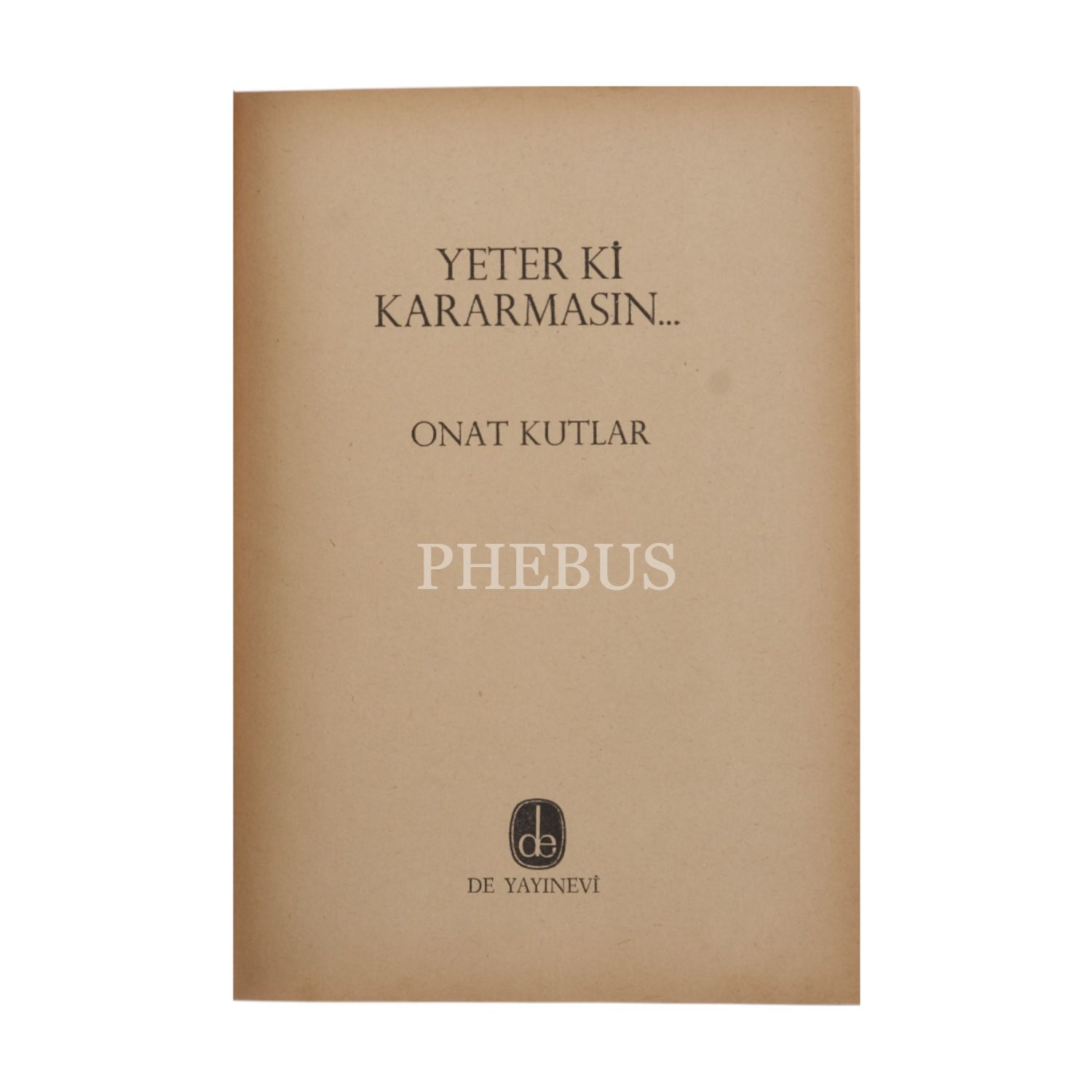 YETER Kİ KARARMASIN, Onat Kutlar, 1984, De Yayınevi, 85 sayfa, 13x20 cm...