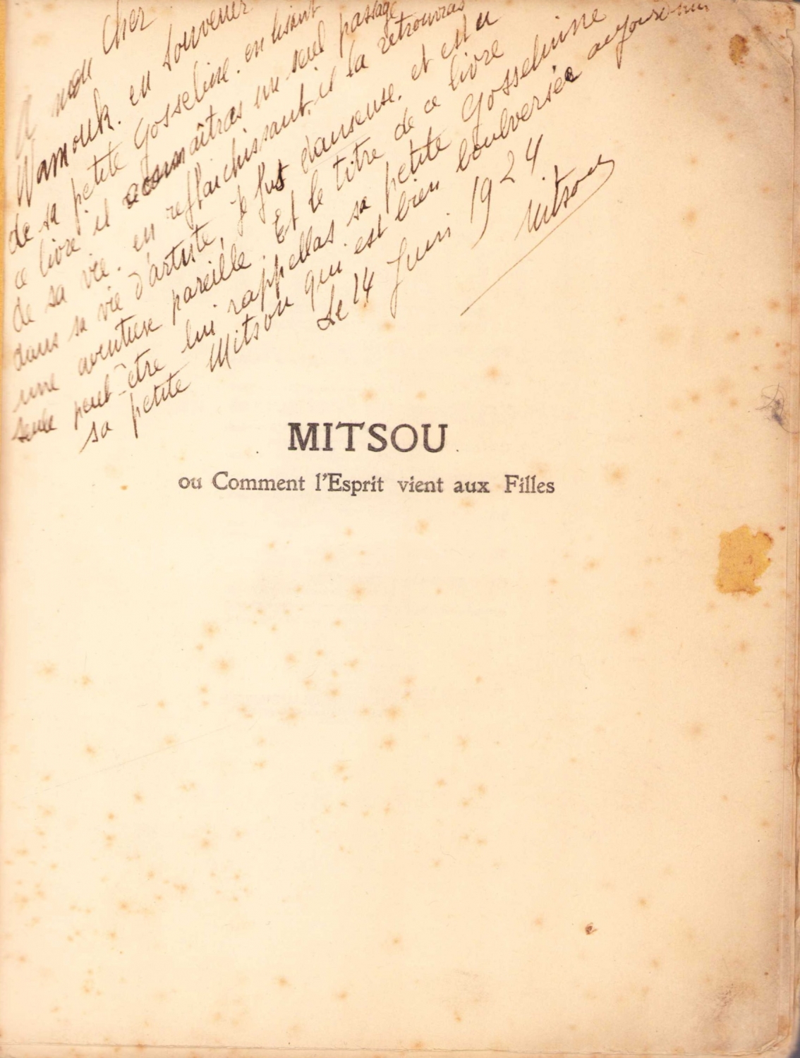 Fransızca Collette Mitsou, Paris, "1924 Mitsou ithaflı imzalı", resimli, cilt yıpranmış, 94 sayfa, 17x22 cm