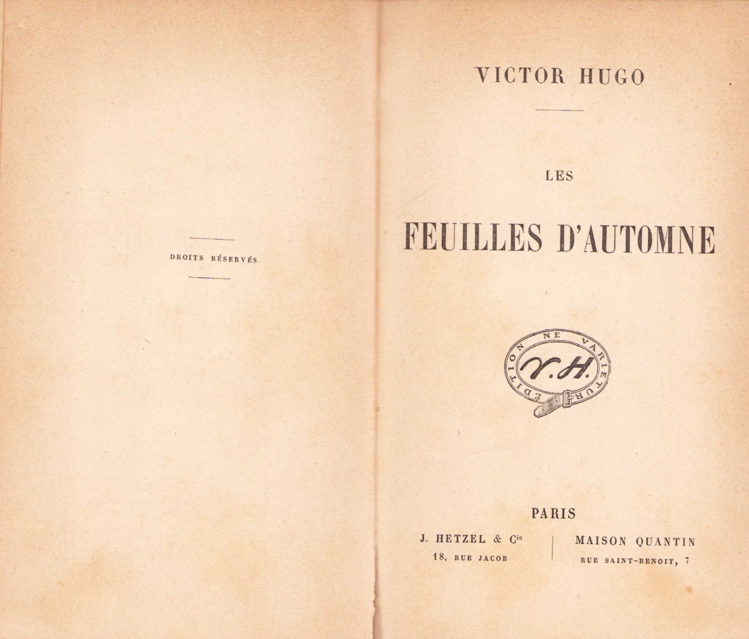 Victor Hugo'nun Les Feuilles D'automne, Paris, Fransızca, 256 sayfa, 11x18 cm
