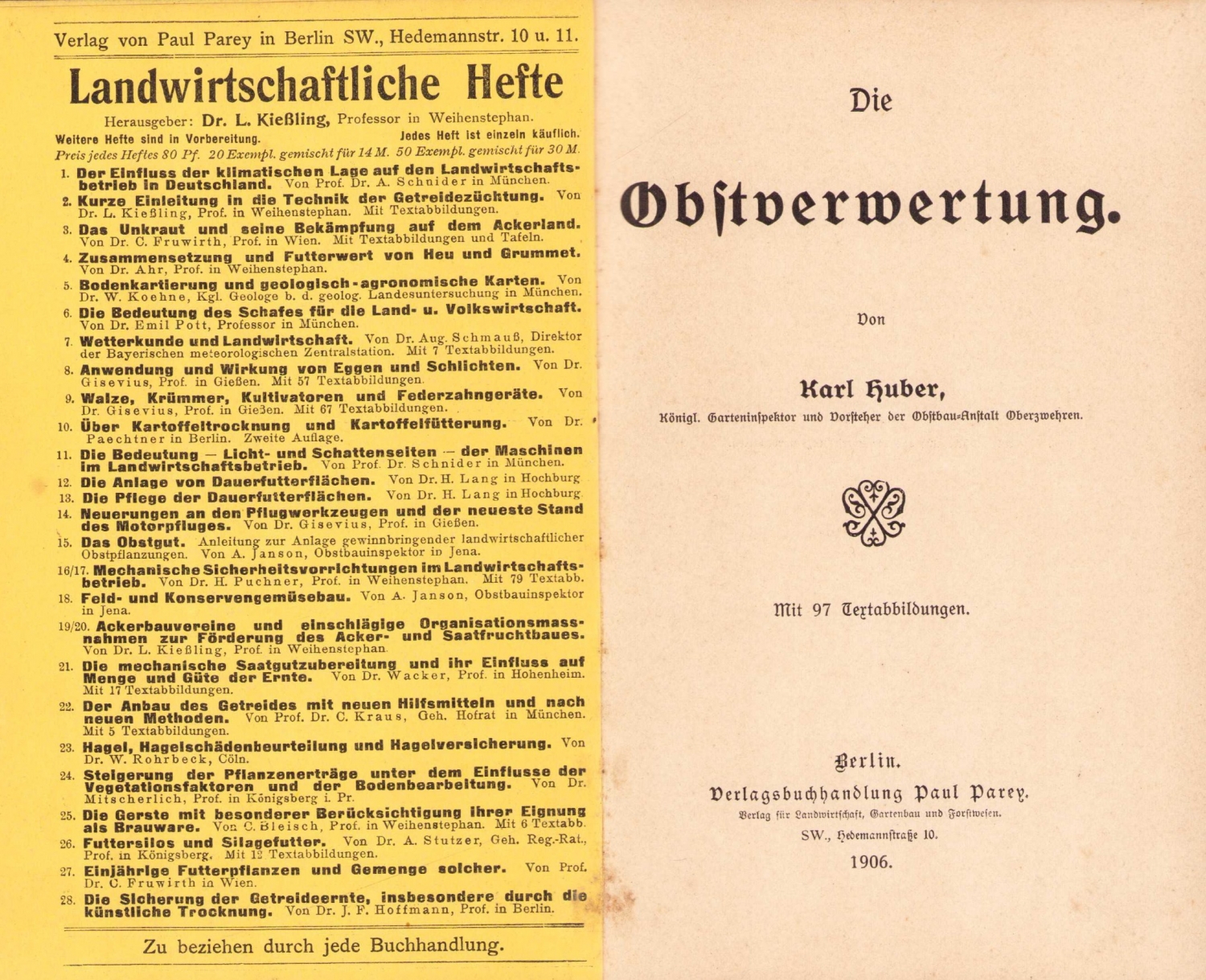 Almanca Die Obstverwertung, Karl Huber, Berlin, 1906, resimli, 195 sayfa, 12x18 cm
