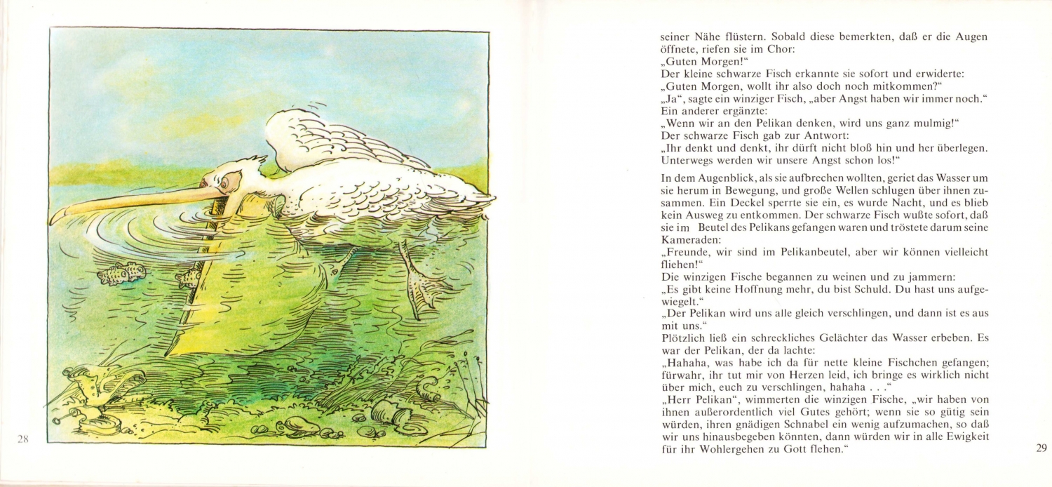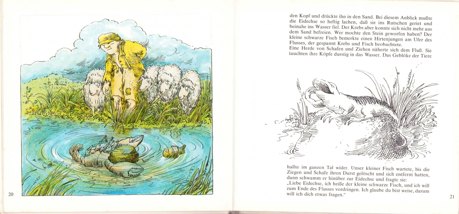 Almanca hikaye kitabı, Der Kleine Schwarze Fisch, Samad Behranghi, Berlin, 1979, resimli, 45 sayfa, 20x20 cm