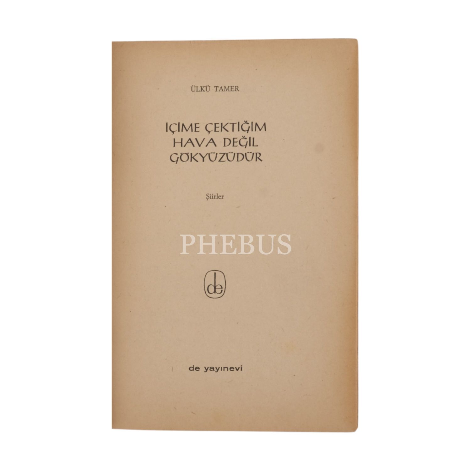 İÇİME ÇEKTİĞİM HAVA DEĞİL GÖKYÜZÜDÜR, Ülkü Tamer, 1966, De Yayınevi, 35 sayfa, 14x20 cm...