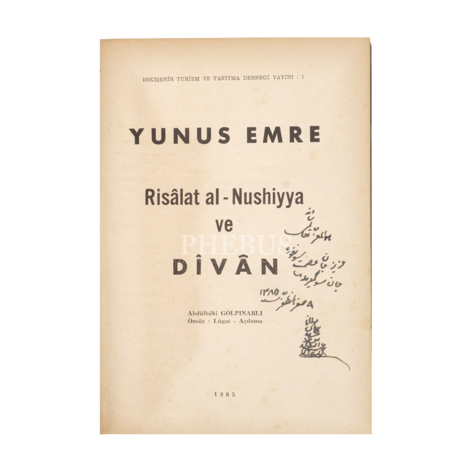 RİSALAT AL-NUSHİYYA VE DİVAN, Yunus Emre, (Hazırlayan: Abdülbaki Gölpınarlı), 1965, Eskişehir Turizm ve Tanıtma Derneği Yayını, 310+417 sayfa, 17x24 cm...