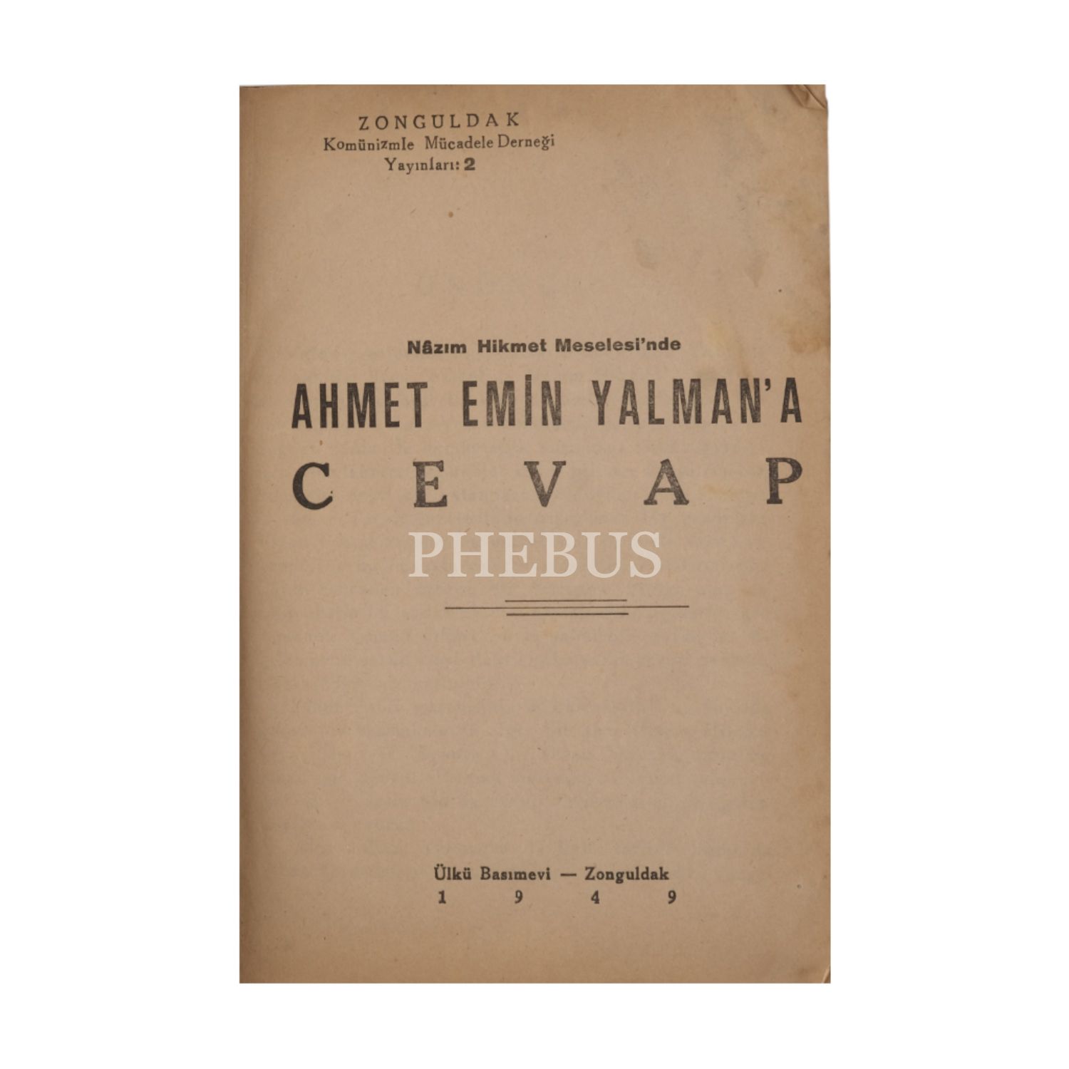 NAZIM HİKMET MESELESİ´NDE AHMET EMİN YALMAN´A CEVAP, 1949, Zonguldak Komünizmle Mücadele Derneği Yayınları, 24 sayfa, 14x21 cm...