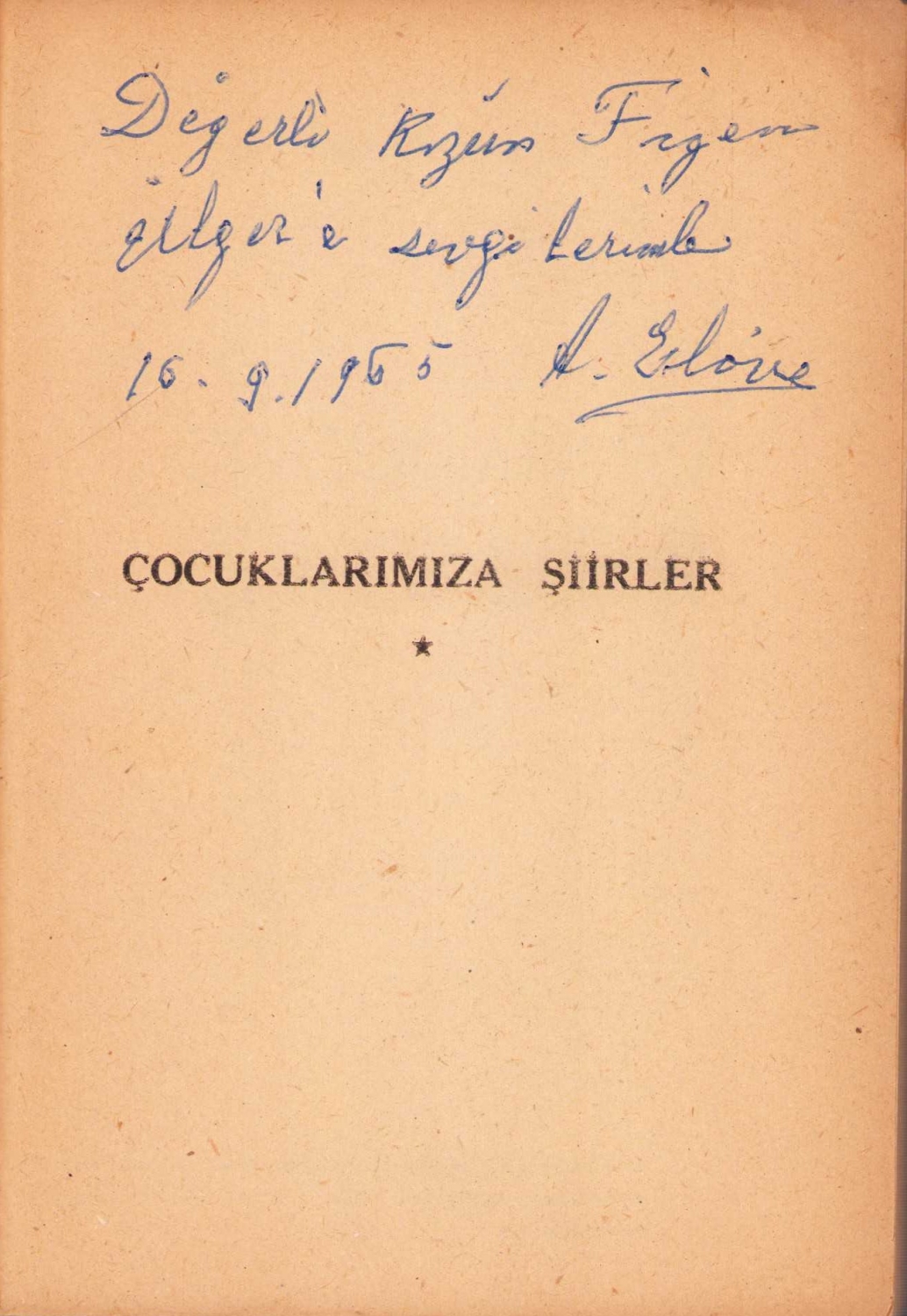 Çocuklarımıza Şiirler, Ali Ulvi Elöve, Yeni Matbaa, İstanbul,1959, ikinci yeni baskı, yazarından ithaflı imzalı, 95 sayfa, 11x15 cm