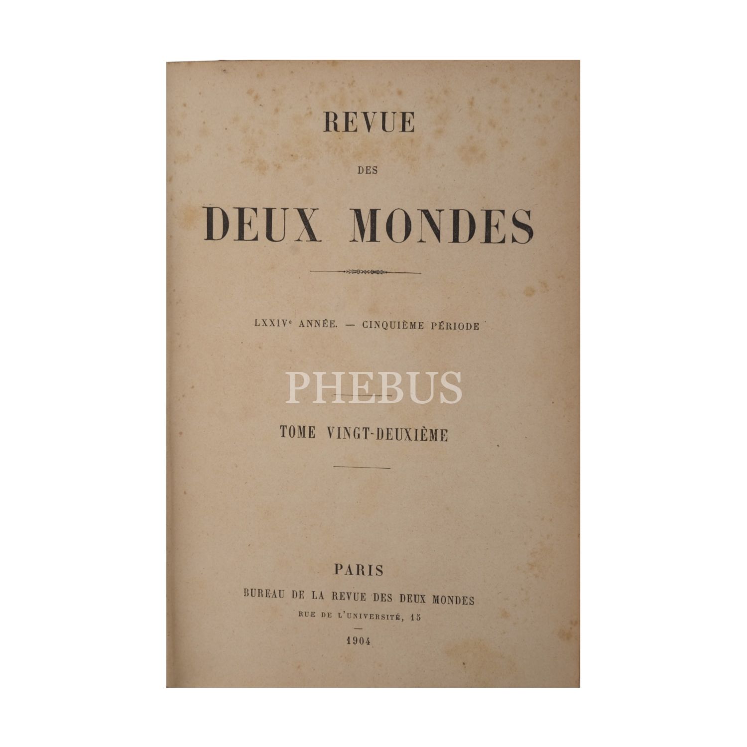 REVUE DES DEUX MONDES, 22. kitap, 1904, Bureau de la Revue des Deux Mondes, Paris, 960 sayfa, 16x23 cm...