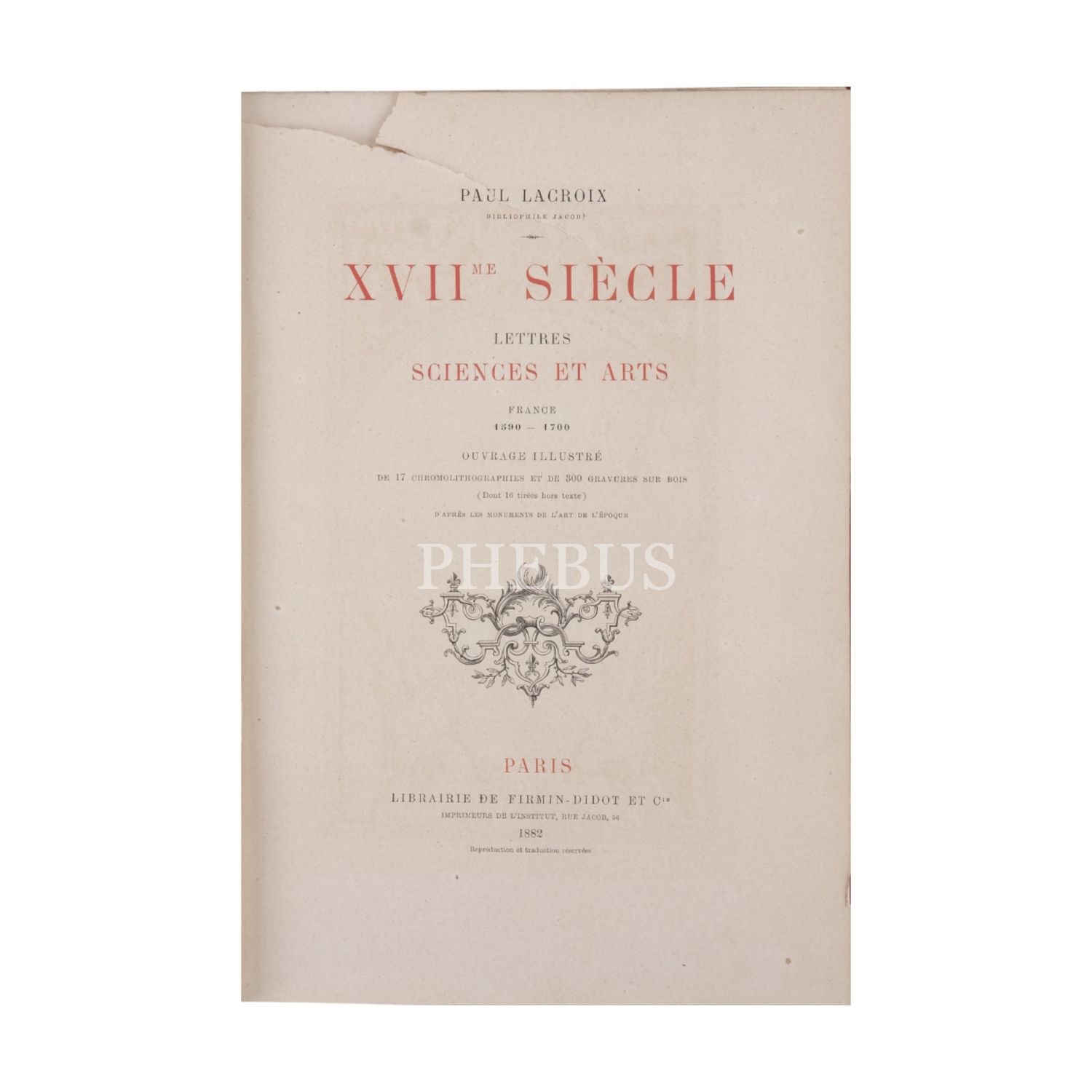 XVIIe SIECLE LETTRES SCIENCES ET ARTS & XVIIIme SIECLE LETTRES SCIENCES ET ARTS, (2 cilt), Paul Lacroix, 1878&1882, Librairie de Firmin-Didot, Paris, 581x560 sayfa, 22x29 cm...