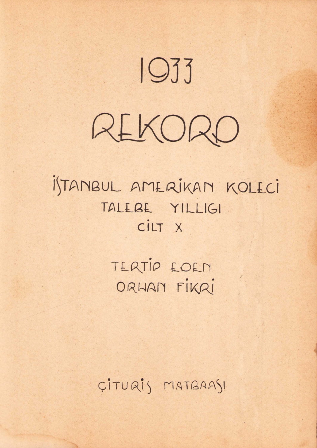 The 1933 Record, Robert Koleji öğrencileri tarafından yayınlanmıştır. tertip eden Orhan Fikri, Cituris Matbaası, resimli, 210 sayfa, 20x28 cm