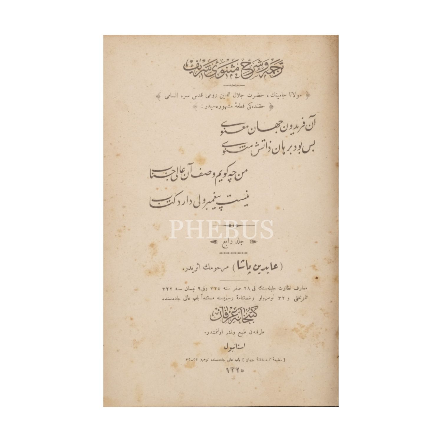 TERCÜME VE ŞERH-İ MESNEVİ-İ ŞERİF (4, 5 ve 6. Cilt), Mevlana Celaleddin-i Rumi, (çeviren: Abidin Paşa), 1326, İkdam Matbaası,