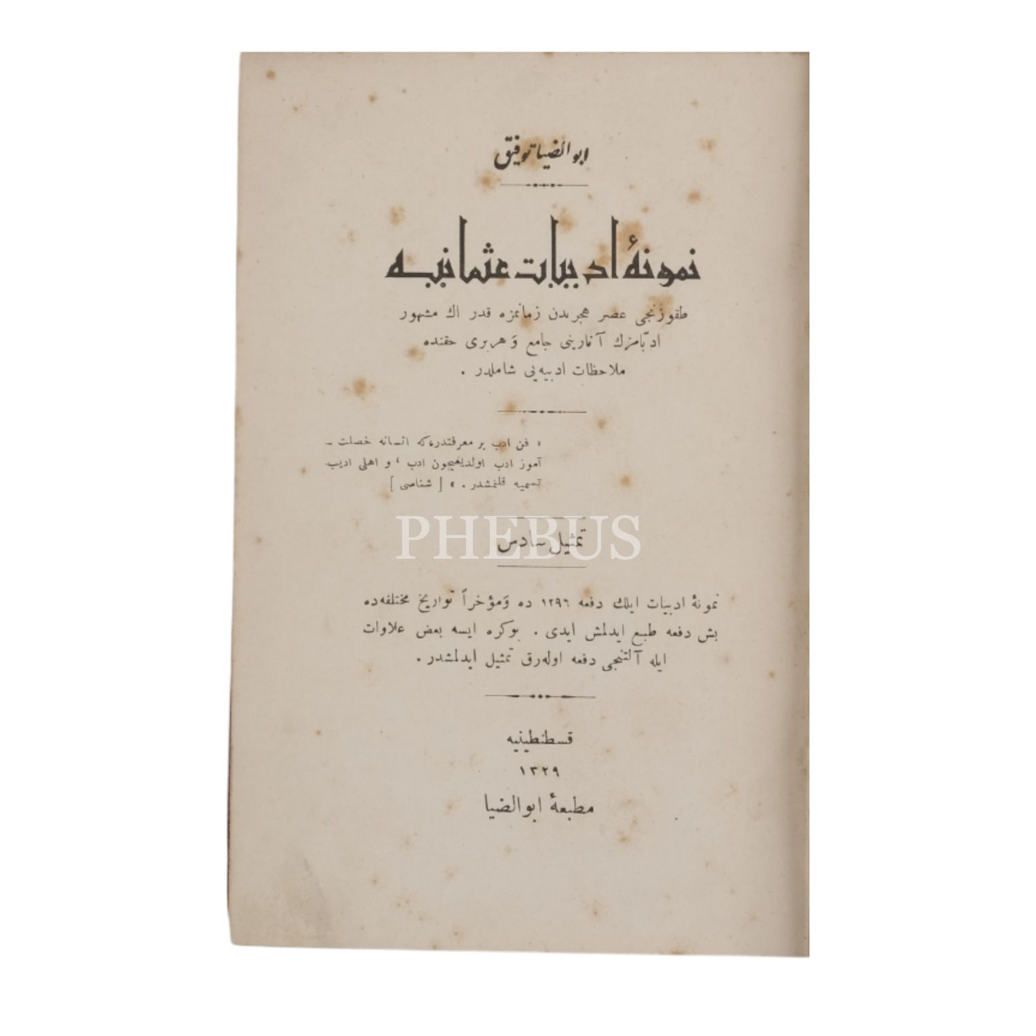 NÜMUNE-İ EDEBİYAT-I OSMANİYE, Ebüzziya Tevfik, 1329, Matbaa-i Ebüzziya, 544 sayfa, 13x19 cm...