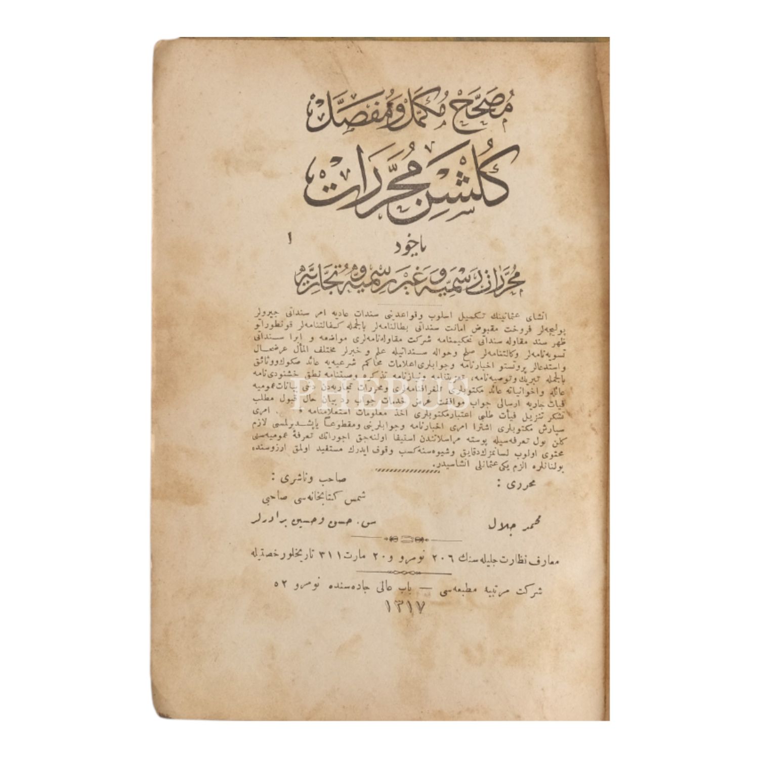 GÜLŞEN-İ MUHARRERAT YAHUD MUHARRERÂT-I RESMİYE VE GAYR-İ RESMİYE VE TİCARİYE, Mehmed Celal, 1317, Şirket-i Mürettibiye Matbaası, 311 sayfa, 14x20 cm...