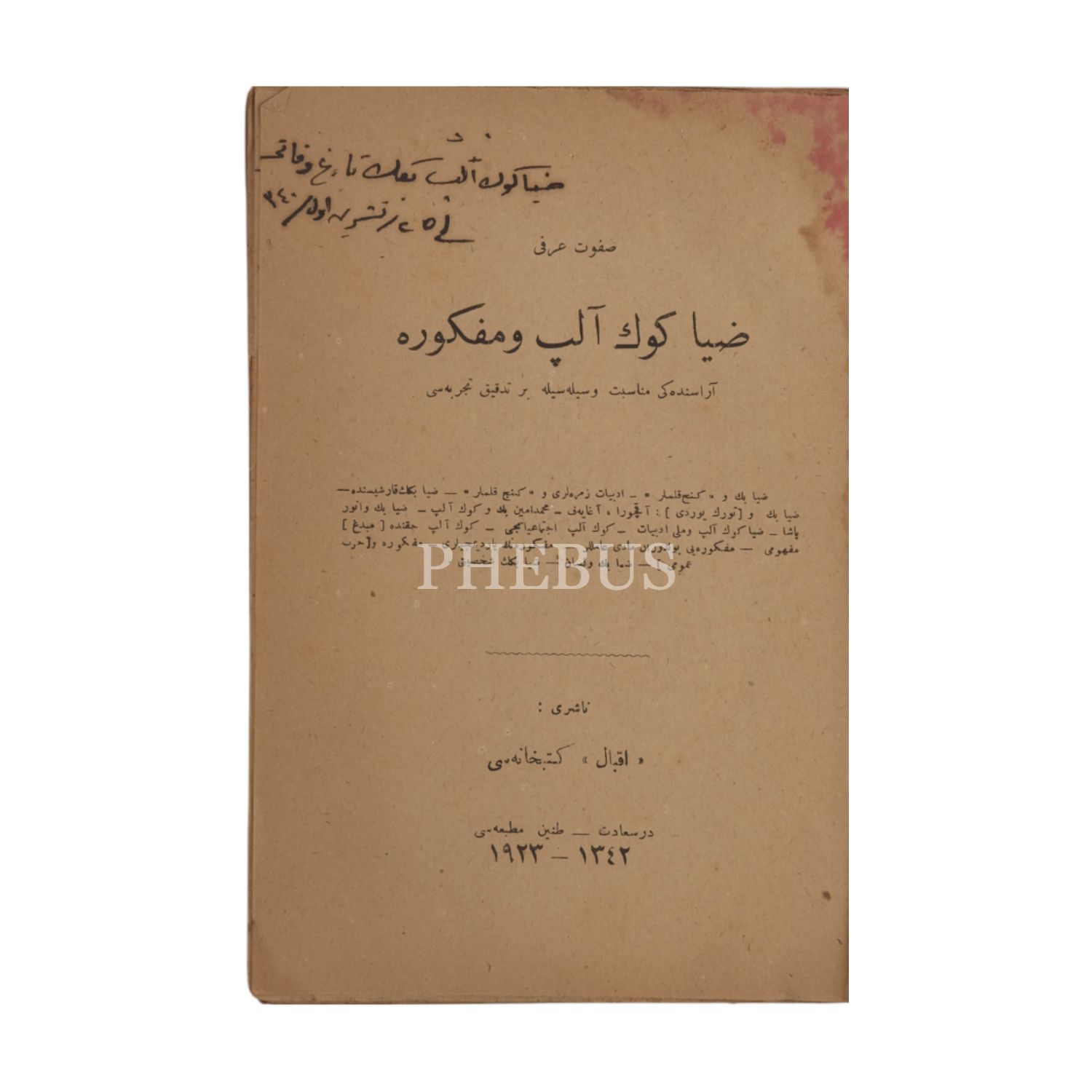 ZİYA GÖKALP VE MEFKURE, Safvet Örfi, 1923, Tanin Matbaası, 135 sayfa, 14x20 cm...