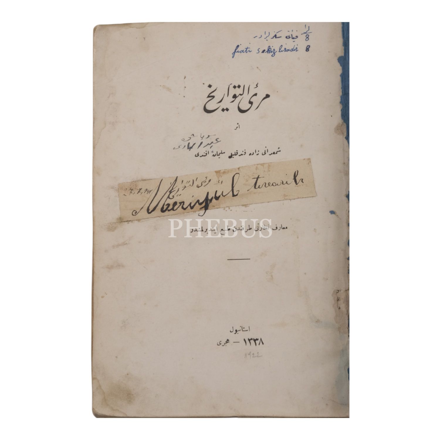 MİRÜ´T-TEVARİH, Fındıklılı Süleyman Efendi, 1338, Matbaa-i Amire, 509 sayfa, 16x24 cm...