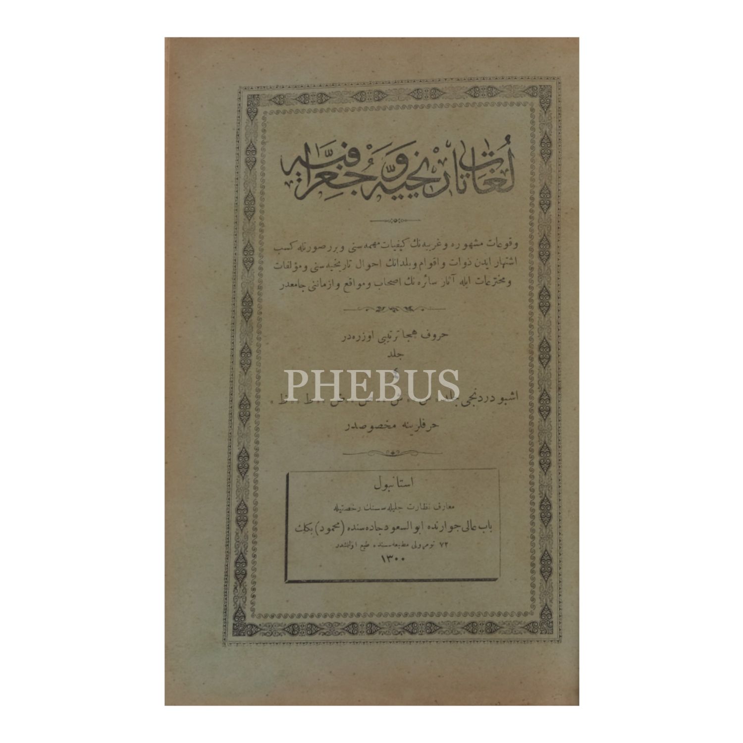 LUGAT-I TÂRİHİYE VE COĞRAFİYE, 4. cilt, 1300, Mahmud Bey Matbaası, 262 sayfa, 16x24 cm...