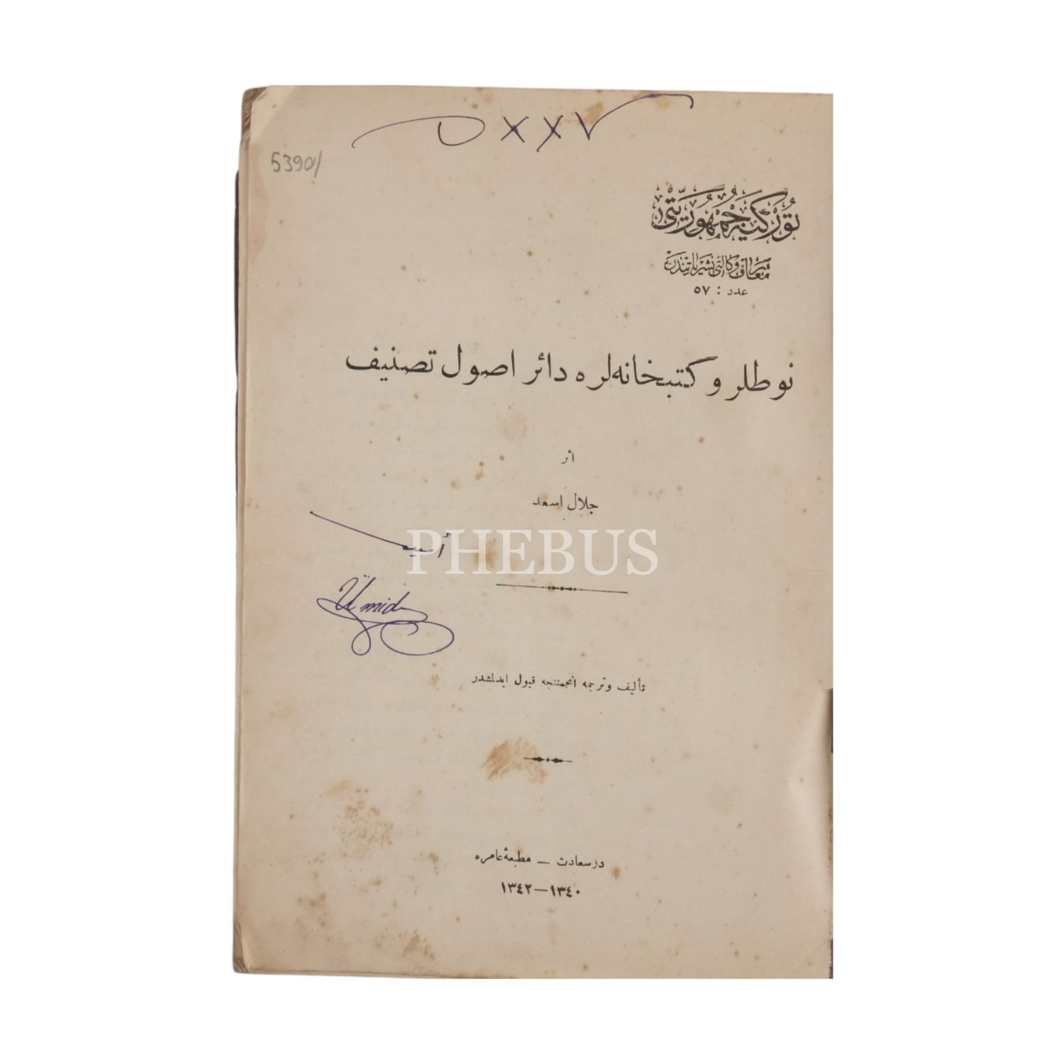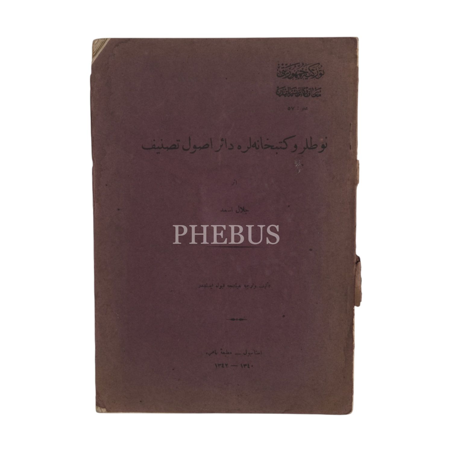 NOTLAR VE KÜTÜPHANELER DAİR USUL-İ TASNİF, Celal Esat, 1343, Matbaa-i Amire, 83 sayfa,