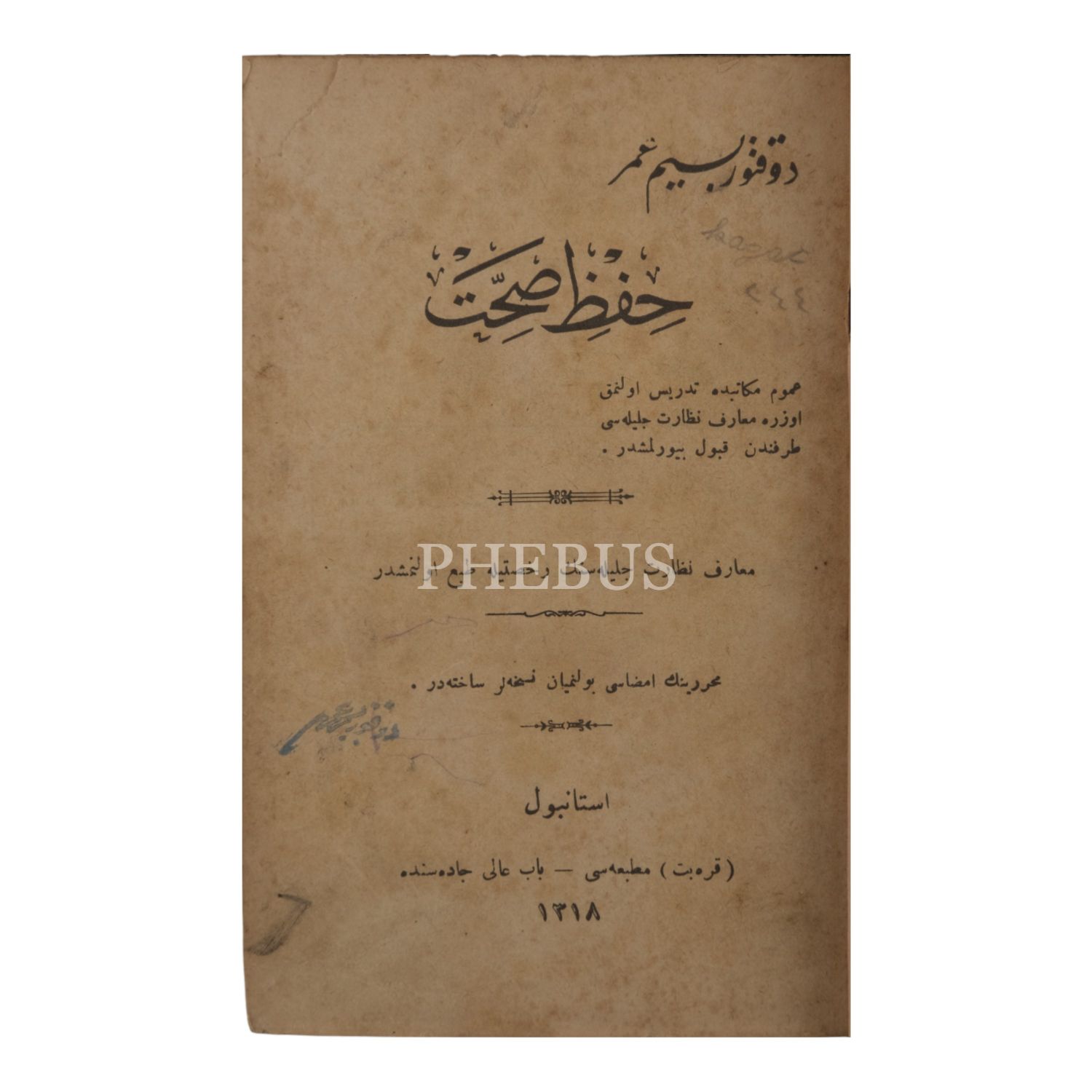 HIFZ-I SIHHAT, Besim Ömer, 1318, Karabet Matbaası, 12x19 cm...