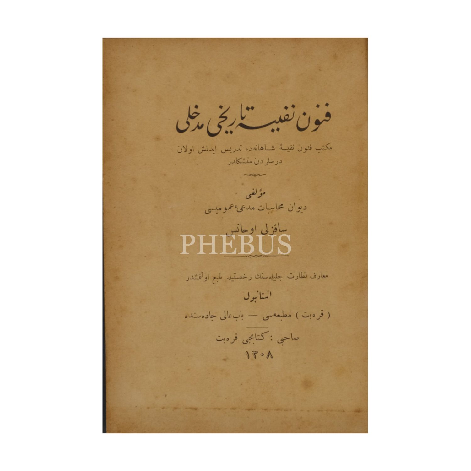 FÜNÛN-U NEFÎSE TÂRÎHİ MEDHALİ, Sakızlı Ohannes, 1308, Karabet Matbaası, 189 sayfa, 12x18 cm...