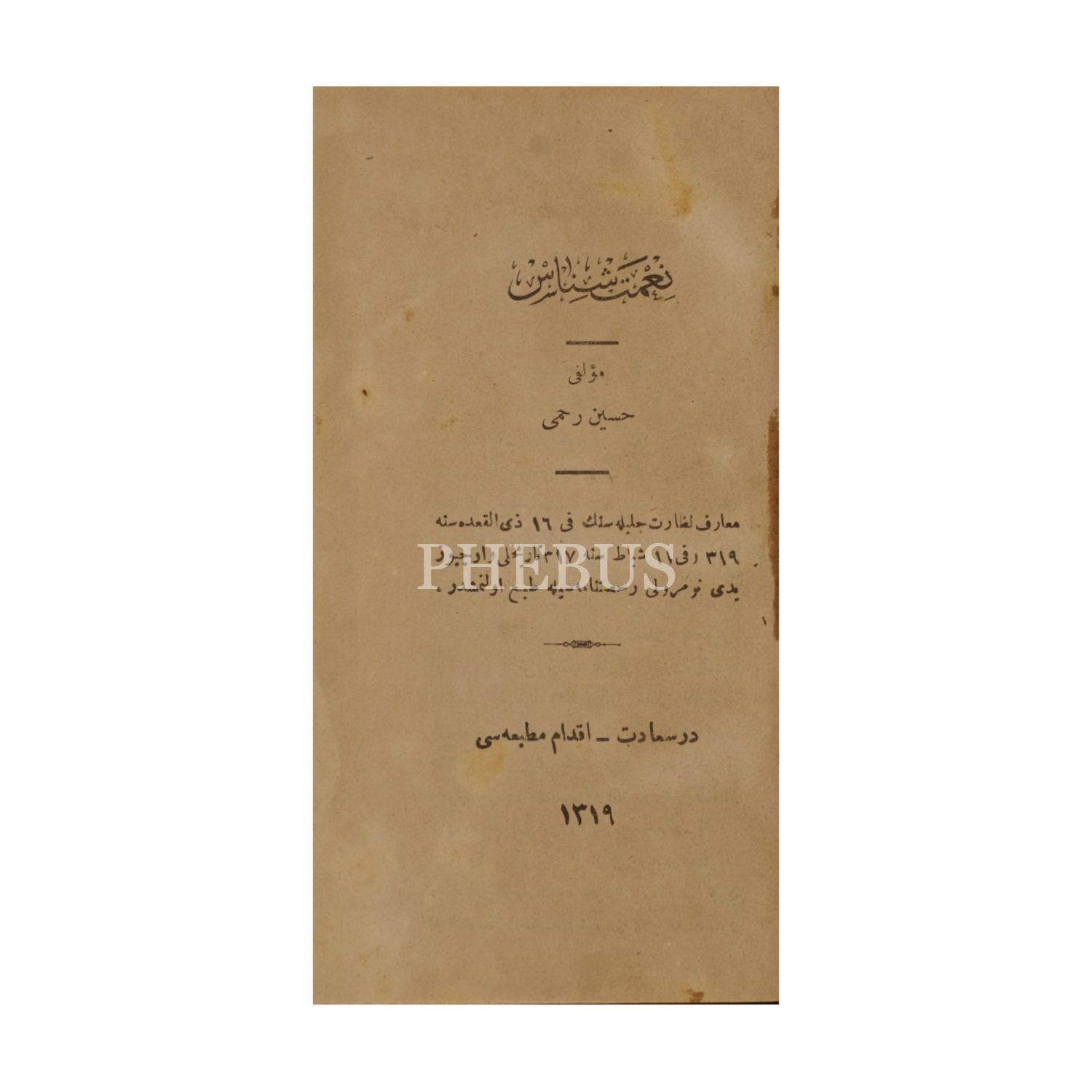 NİMETŞİNAS, Hüseyin Rahmi, 1319, İkdam Matbaası, 273+16 sayfa, 12x20 cm...