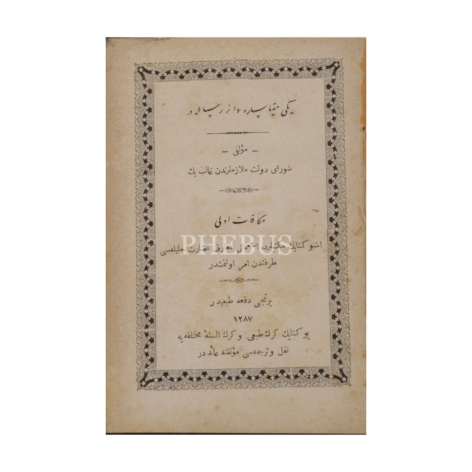 YENİ MİKYASLARA DAİR RİSALEDİR, Mülazım Galip Bey, 1287, 76 sayfa, 14x20 cm...