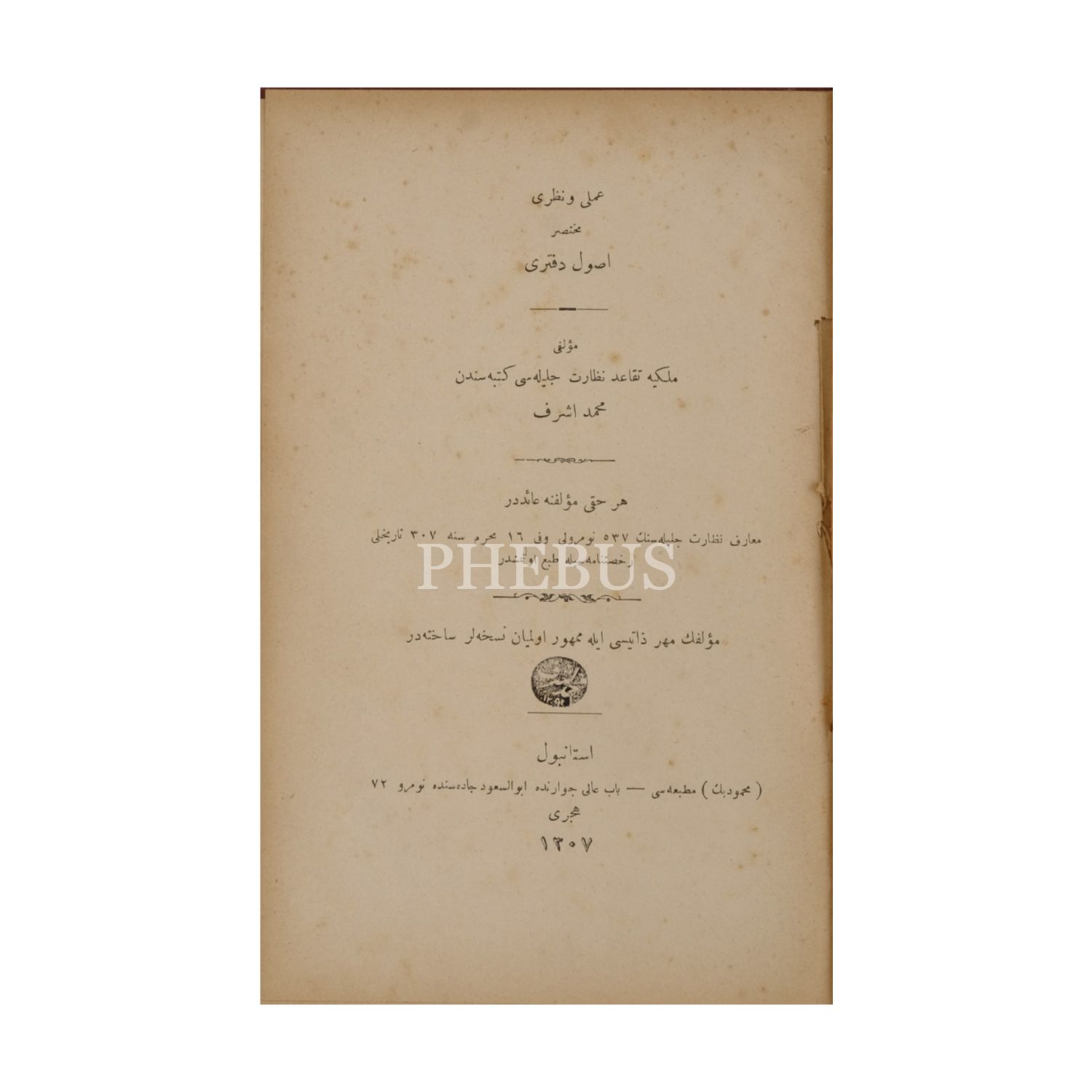 AMELÎ ve NAZARÎ MUHTASAR USUL DEFTERİ, Mehmed Eşref, 1307, 79 sayfa, 16x23 cm...