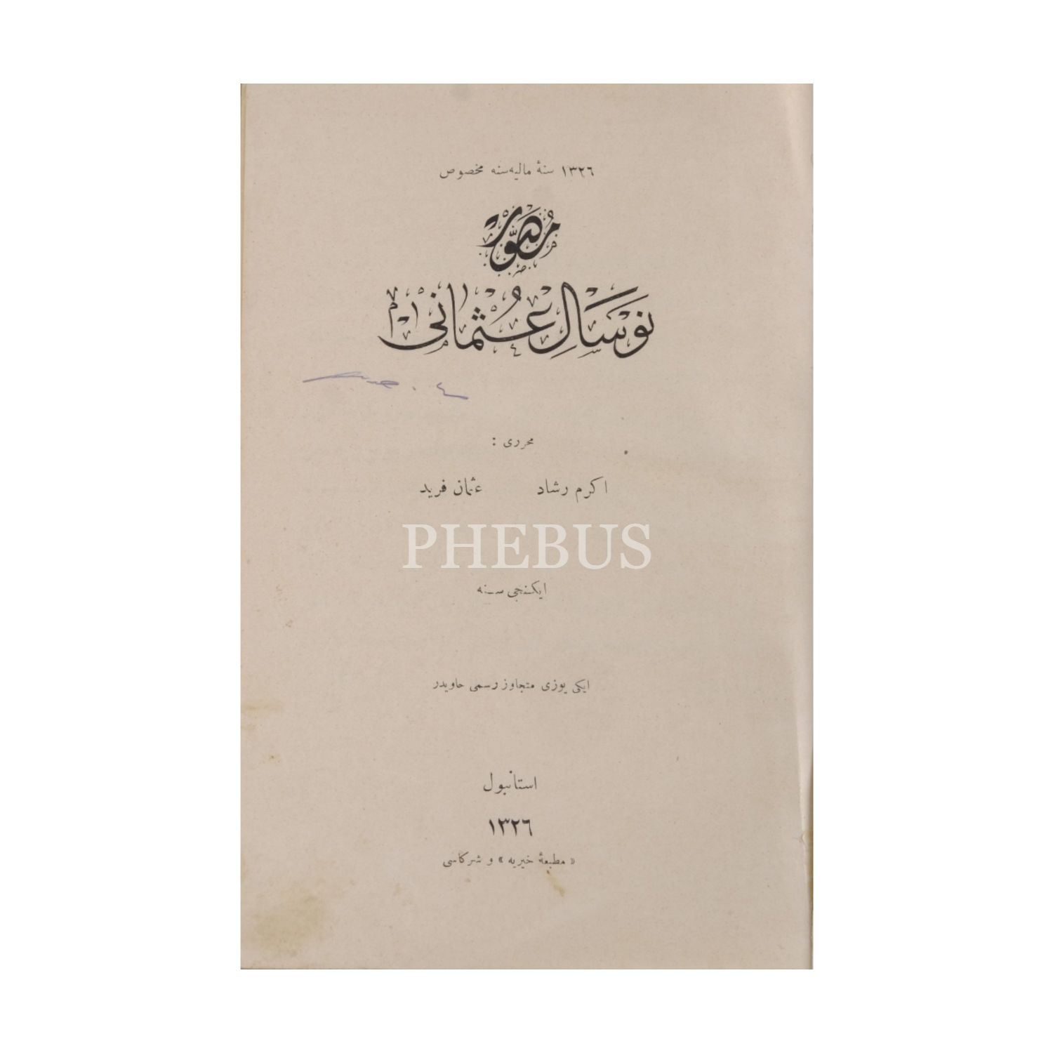 MUSAVVER NEVSÂL-İ OSMÂNÎ, (İkinci sene), Ekrem Reşad-Osman Ferid, 1326, Matbaa-i Hayriye, 250 sayfa, 16x24 cm...