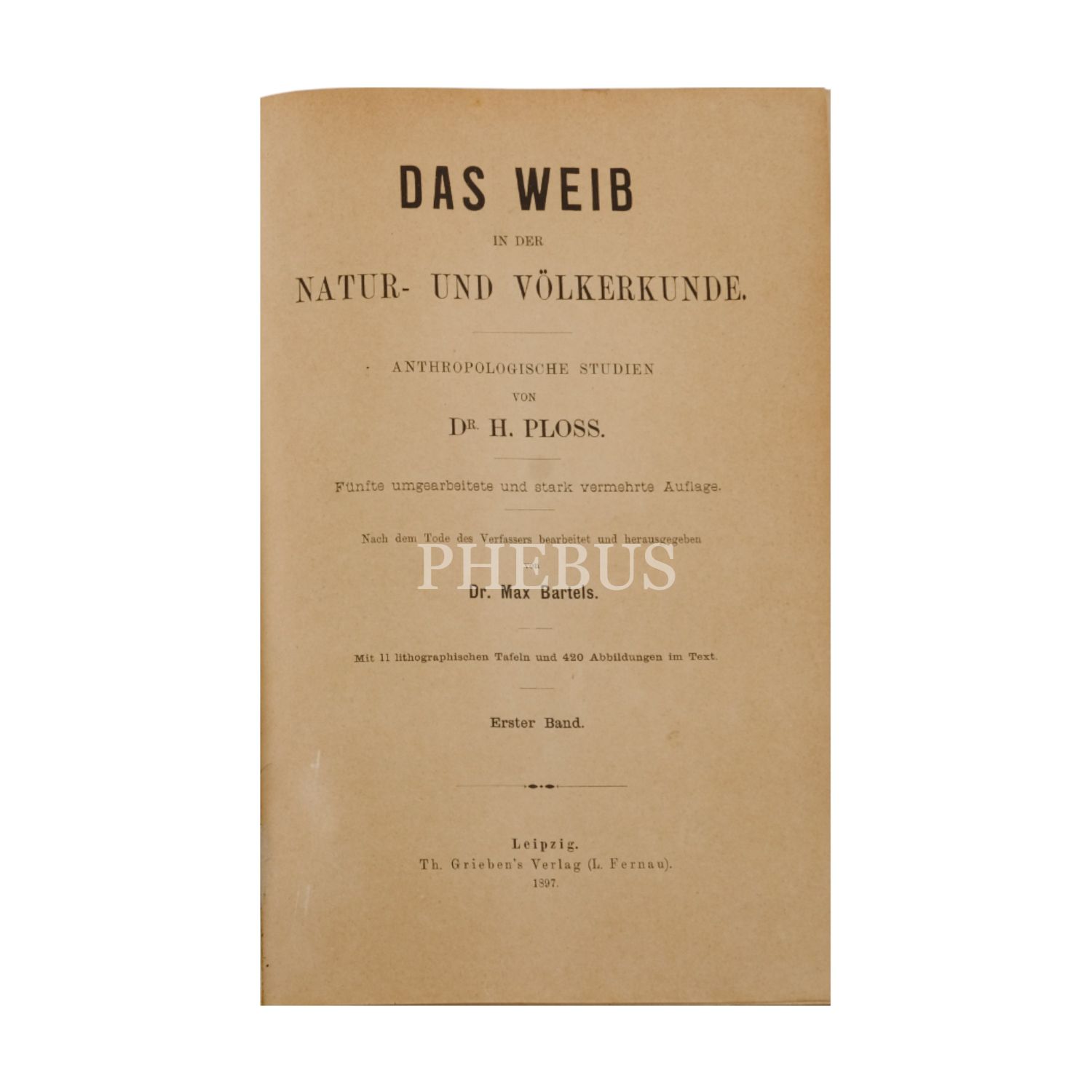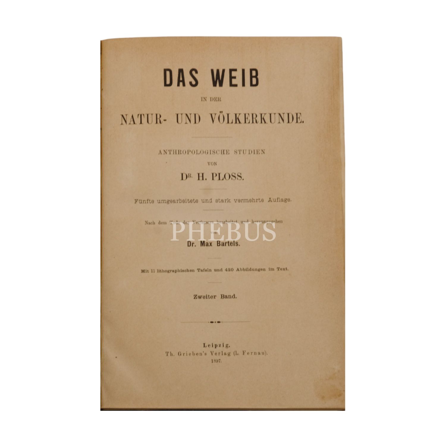 DAS WEIB IN DER NATUR - UND VÖLKERKUNDE, Dr. H. Ploss, 1897, Th. Grieben´s Verlag (Leipzig), 710+712 sayfa, 17x26 cm...