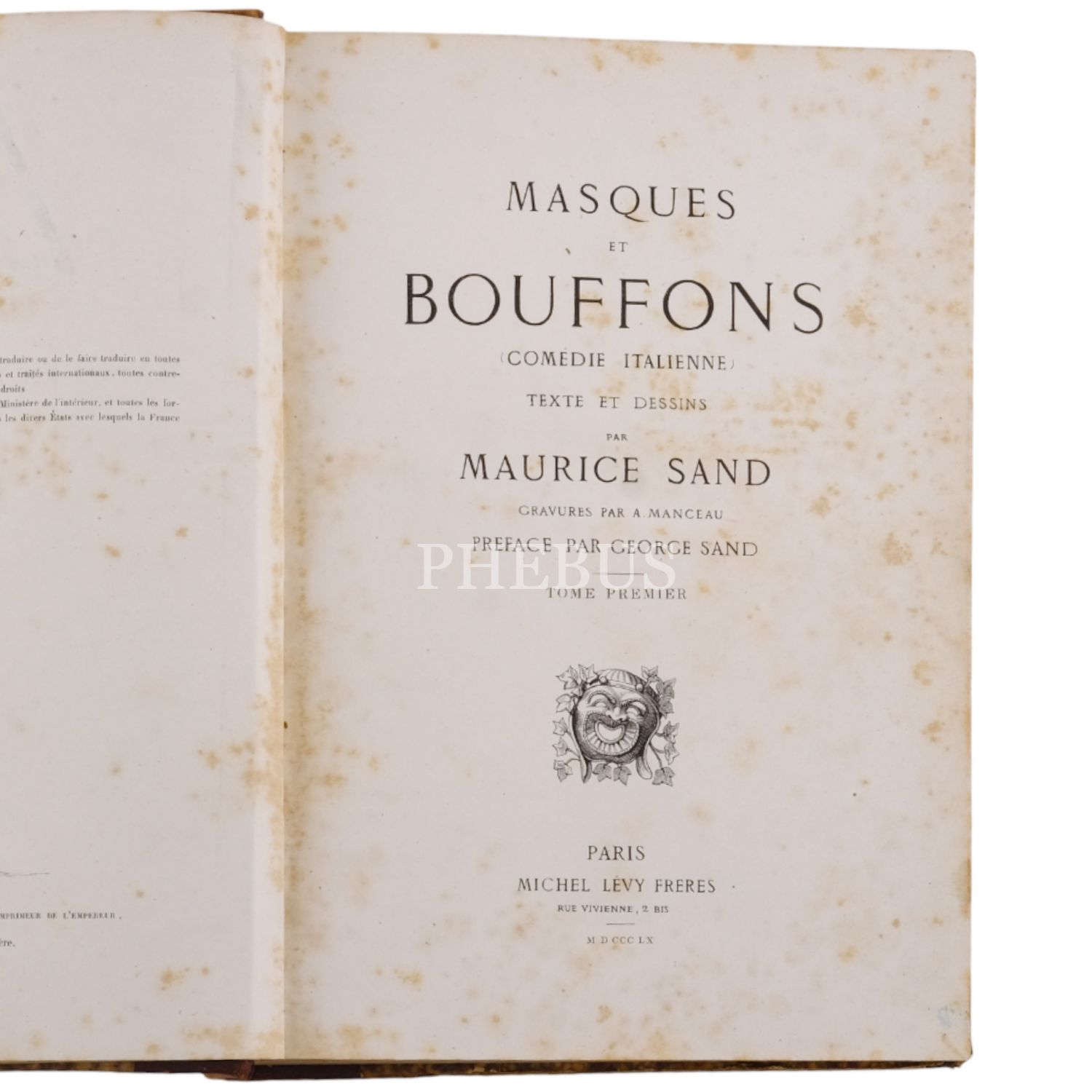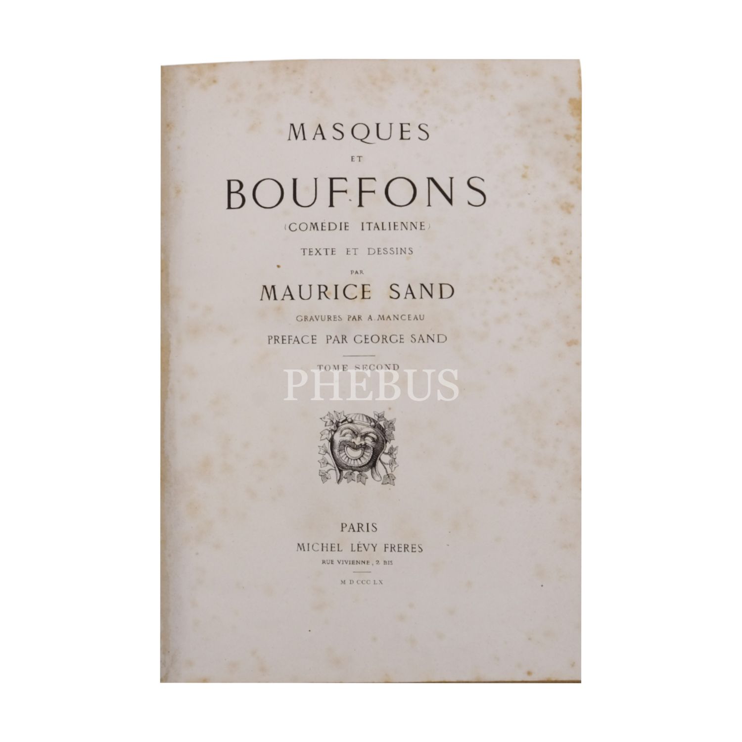 MASQUES ET BOUFFONS (comédie italienne), Maurice Sand, 1860, Michel Levy (Paris), 384+357 sayfa, 19x26 cm...