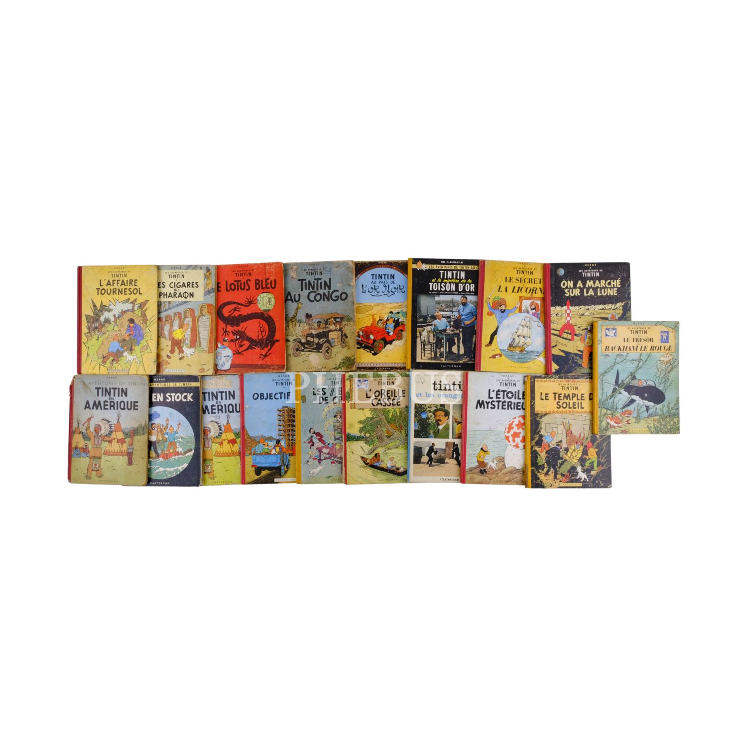 40´lı ve 50´li yıllarda Casterman tarafından basılan, Tenten´in Maceraları (Les Aventures de Tintin) çizgi roman serisinden 18 adeti, 23x31 cm...