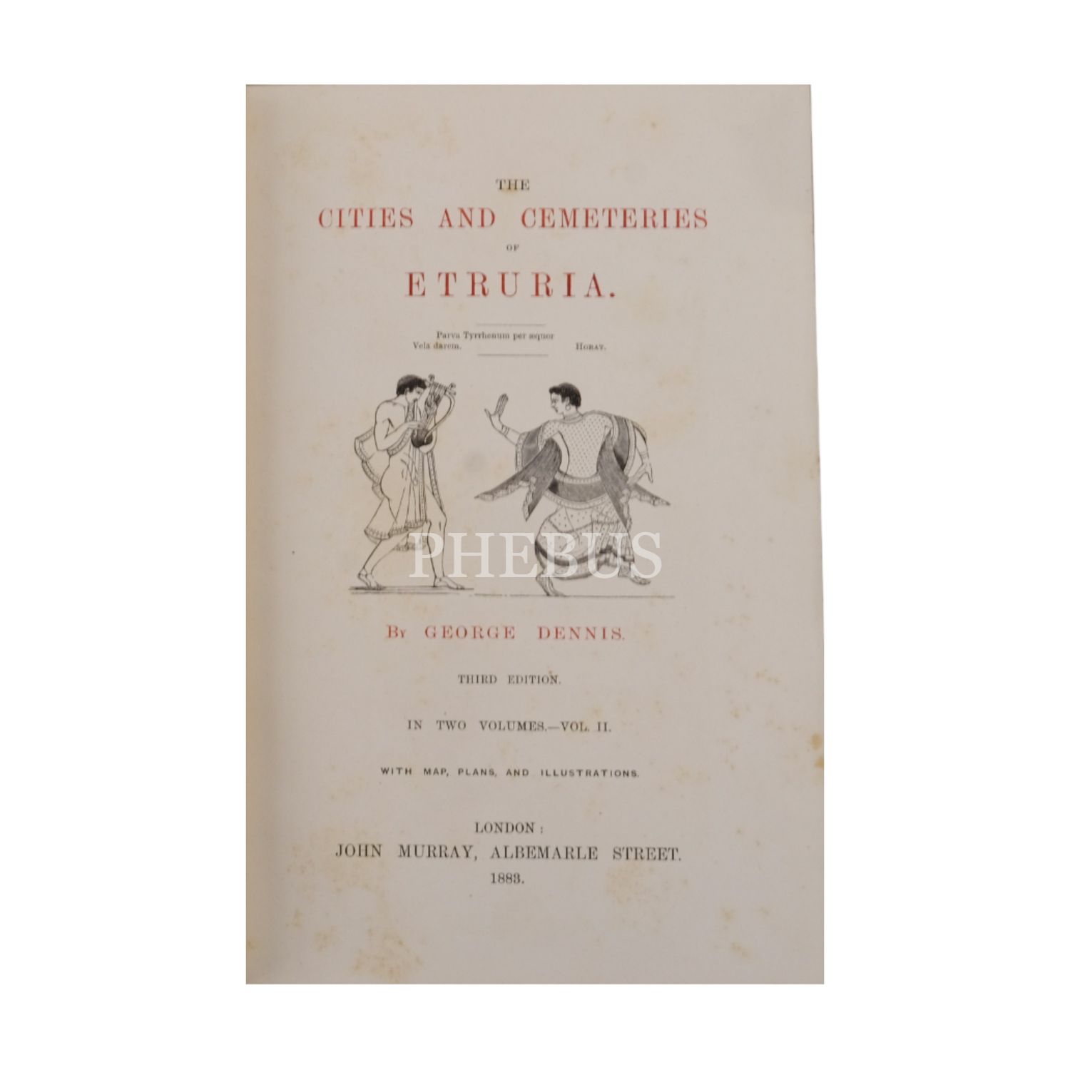 THE CITIES and CEMETERIES OF ETRURIA, 2 cilt,George Dennis, 1883, John Murray, Londra, 501+579 sayfa, 17x24 cm...