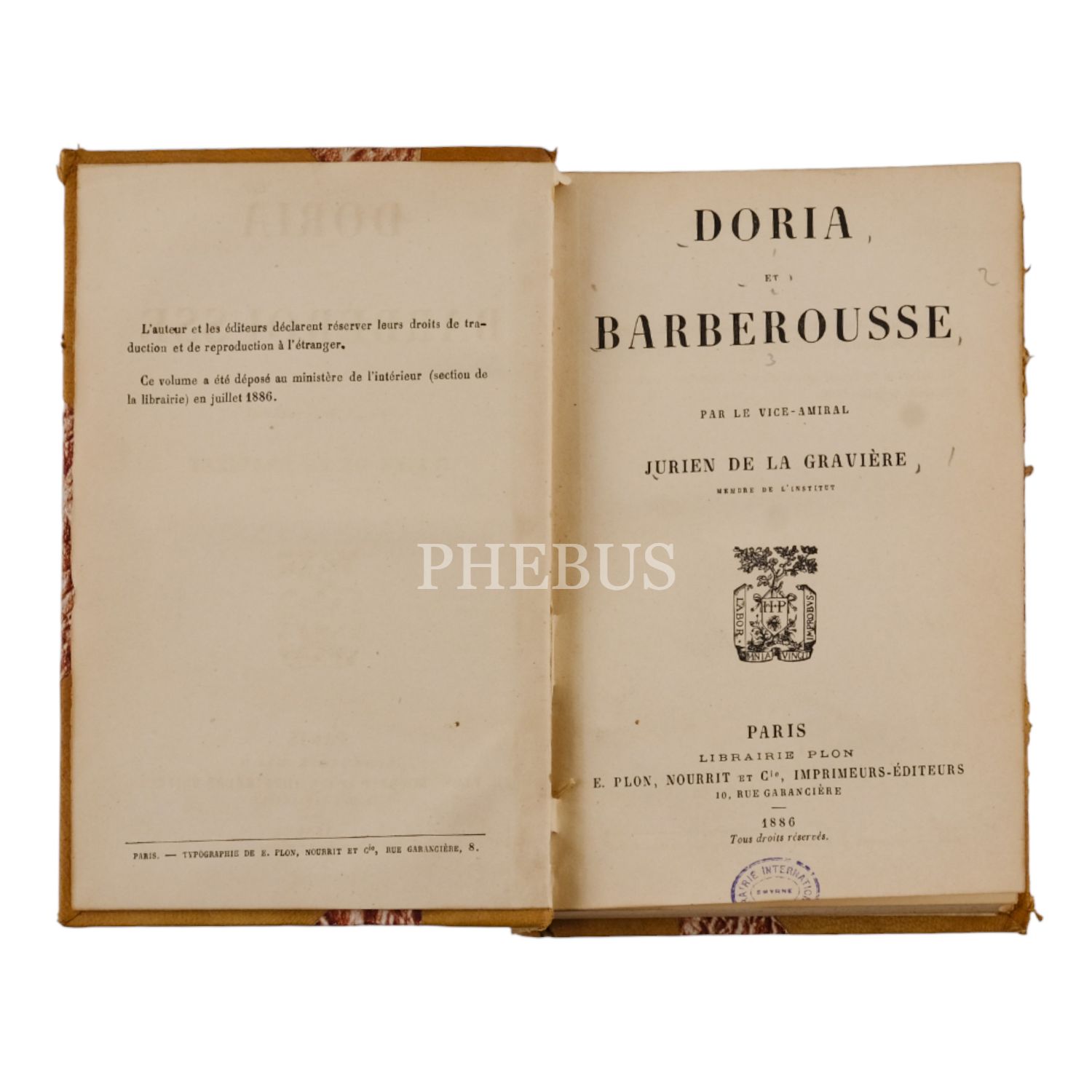 LES CORSAIRES BARBARESQUE et la MARINE de SOLIMAN le GRAND & DORIA et BARBAROUSSE, 2 cilt, Jurien de la Graviere, 1886-1887, E. Plon et Cie Imprimeurs-Editeurs, Paris, 377+346 sayfa, 12x18 cm...