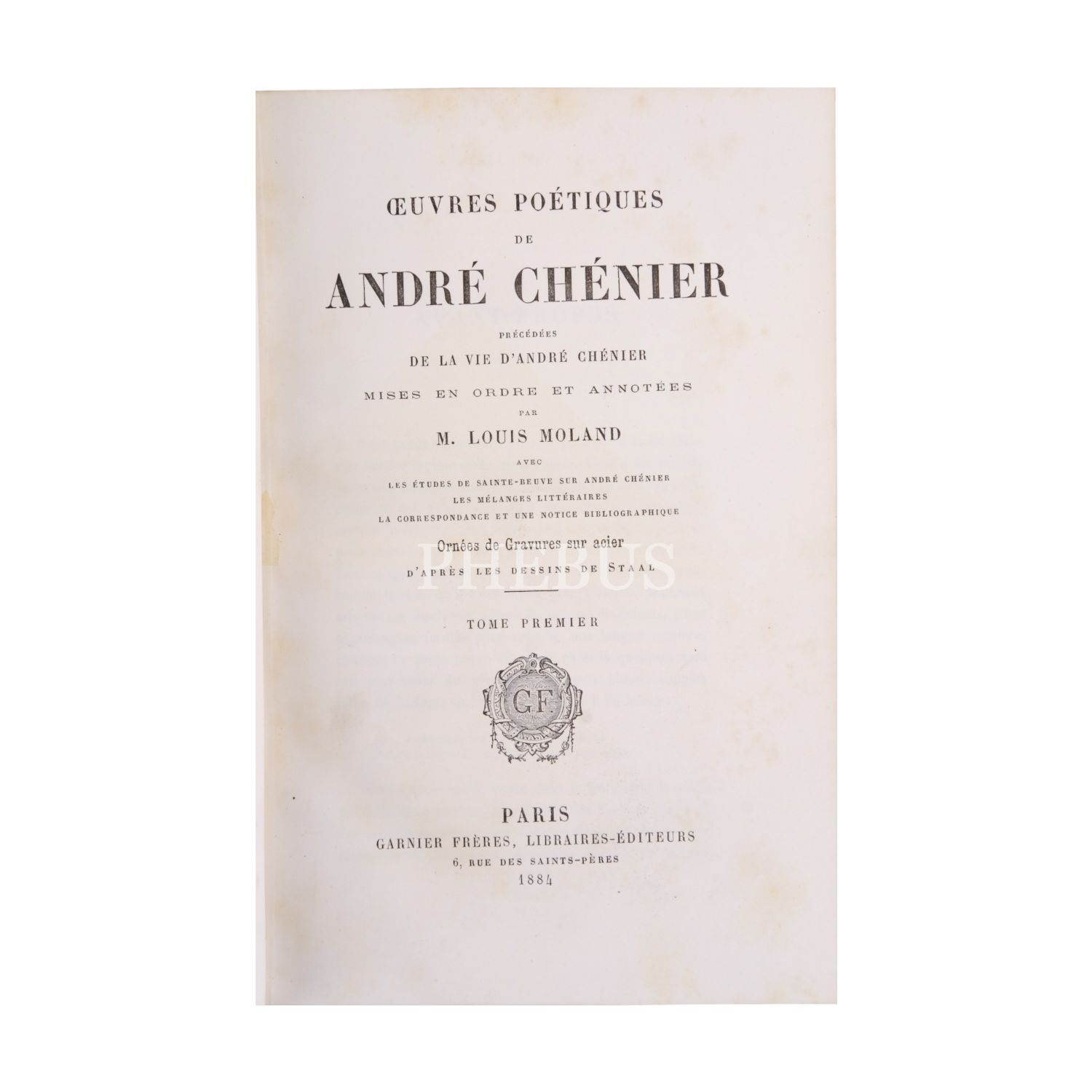 OEUVRES POETIQUES DE ANDRE CHENIER, Andre Chenier, (hazırlayan: M. Louis Moland), 1884, Garnier Freres (Paris), 376 sayfa, 15x23 cm...