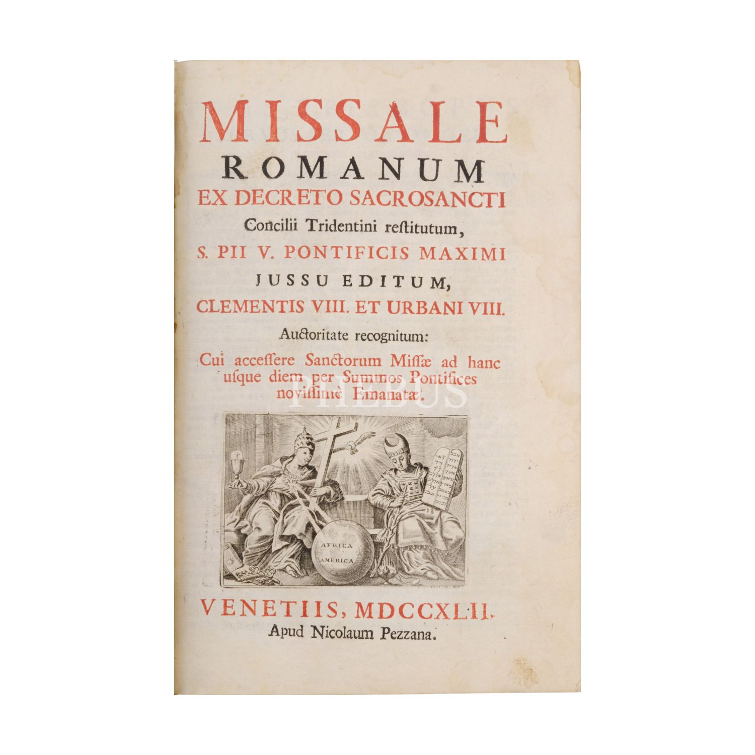 MISSALE ROMANUM, 1742, Apud Nicalaum Pezzana (Venedik), 640 sayfa, 17x25 cm...