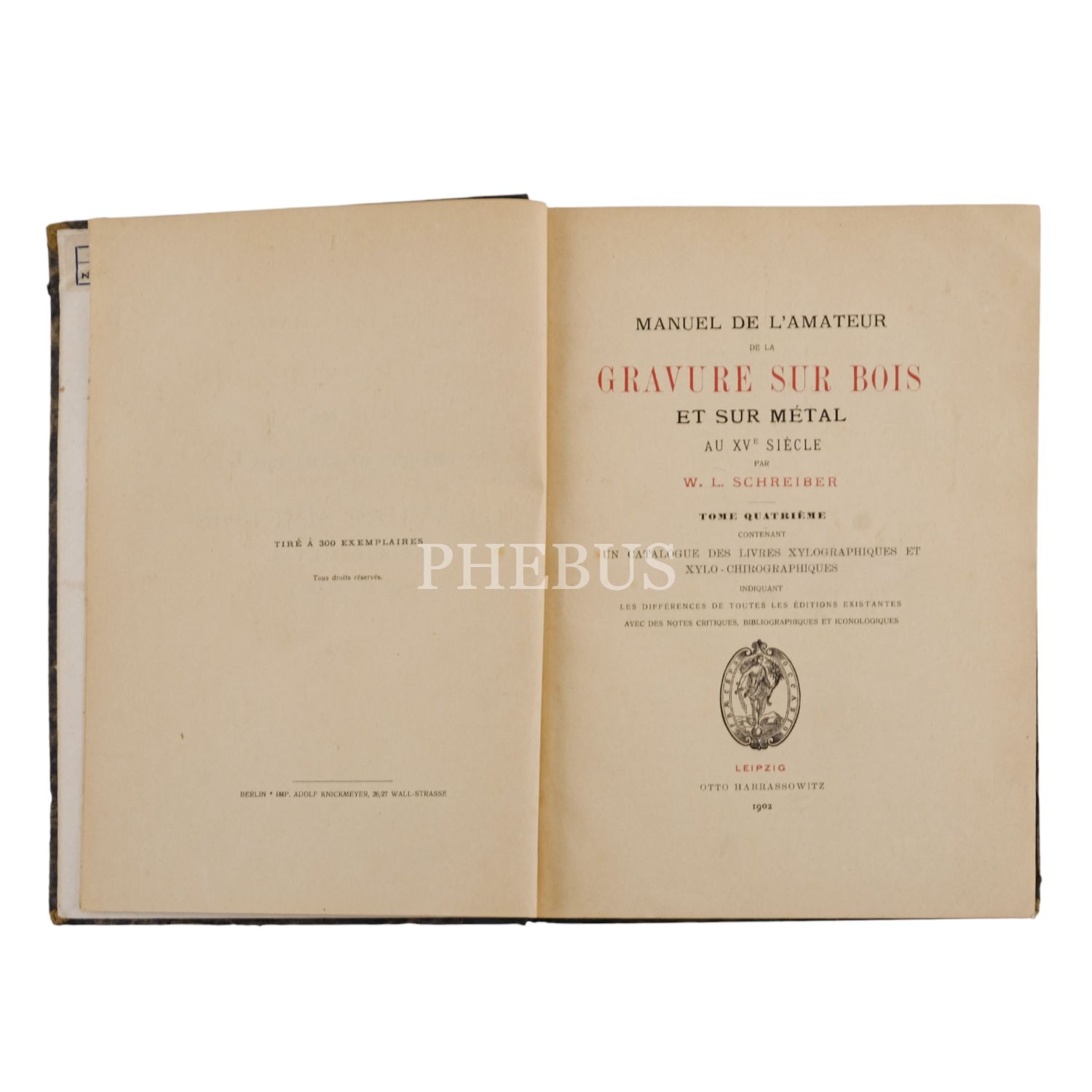 MANUEL DE L´AMATEUR DE LA GRAVURE SUR BOIS ET SUR MÉTAL AU XVE SIÈCLE (1 ve 4. Cilt), W. L. Schreiber, 1902, Otto Harrassowitz (Leipzig), 464 sayfa, 18x25 cm...