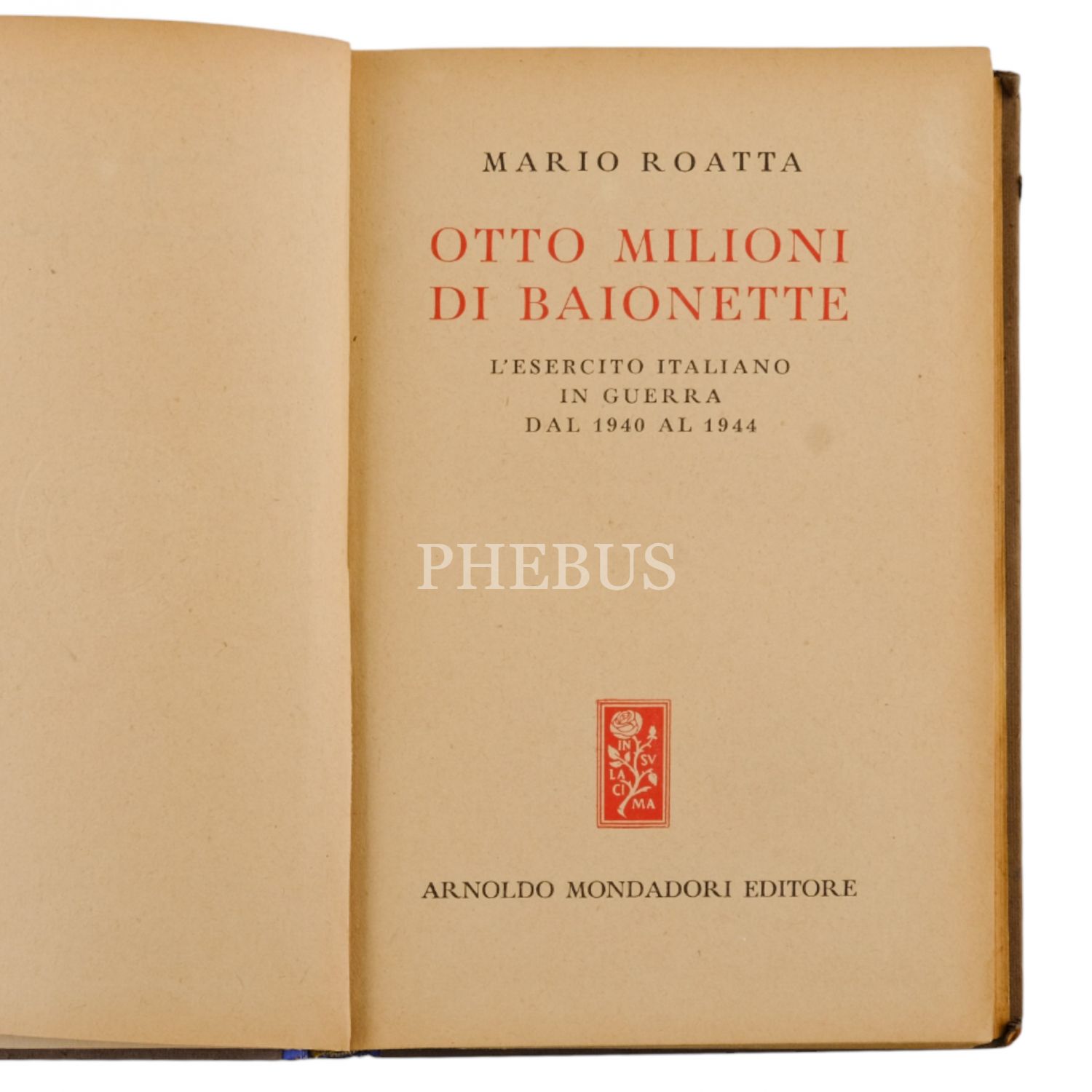 OTTO MILIONI DI BAIONETTE, Mario Roatta, 1946, Arnoldo Mondadori Editore, 365 sayfa, 14x20 cm...