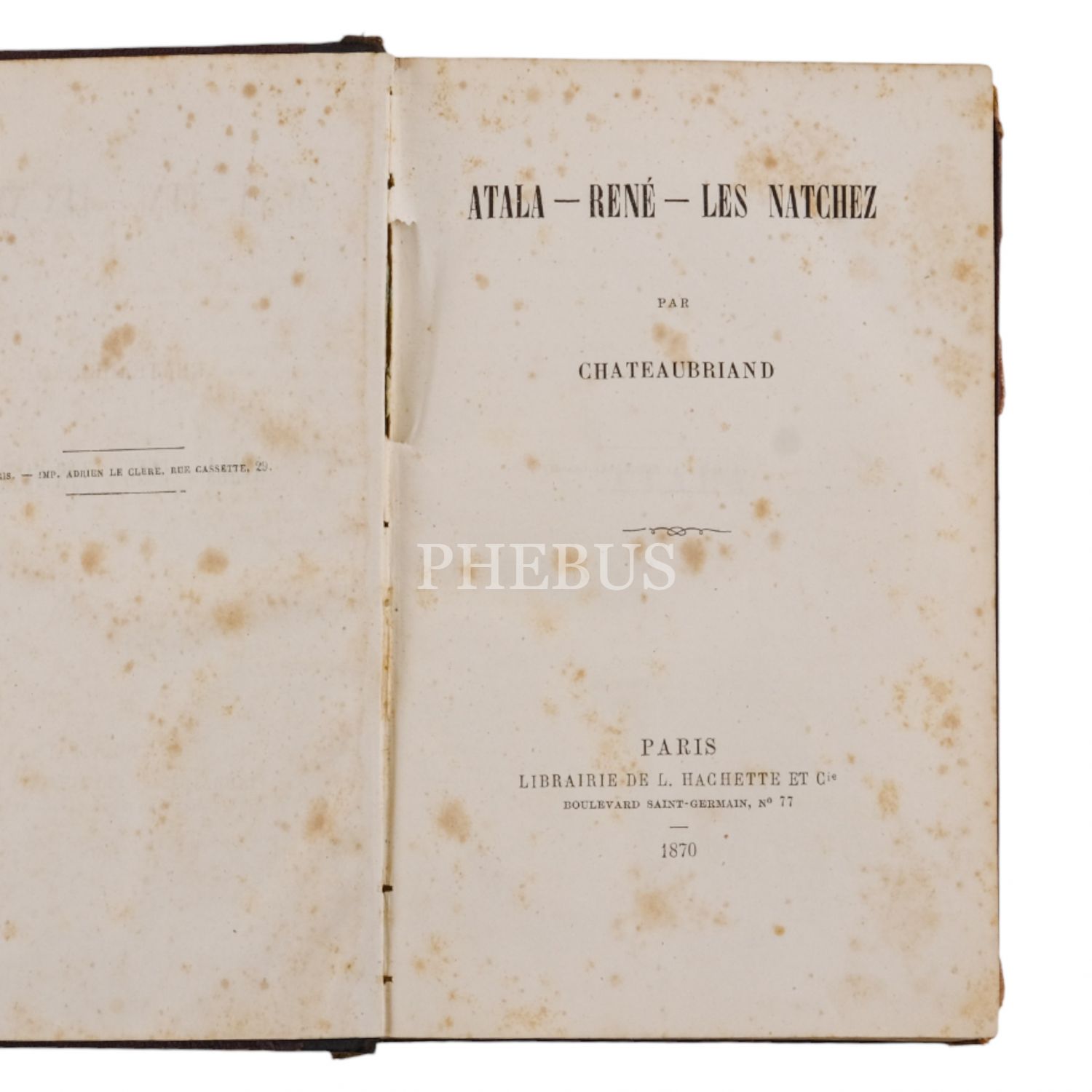 ATALA-RENE-LES NATCHEZ, Chateaubriand, 1870, Librairie de L. Hachette Et Cie., 537 sayfa, 13x18 cm...