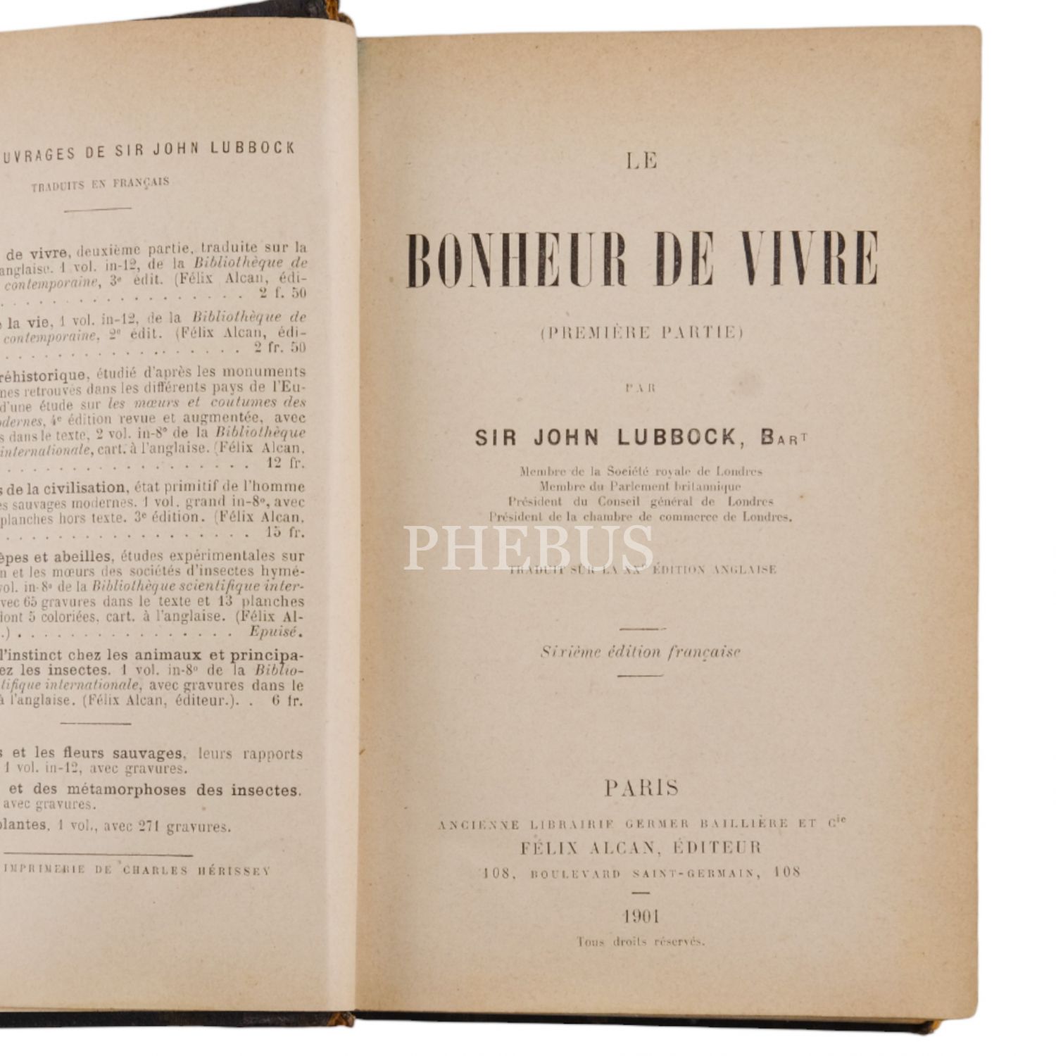 LE BONHEUR DE VIVRE (3 Cilt), Sir John Lubbock, 1901, Editeur Felix Alcan, 12x18 cm...