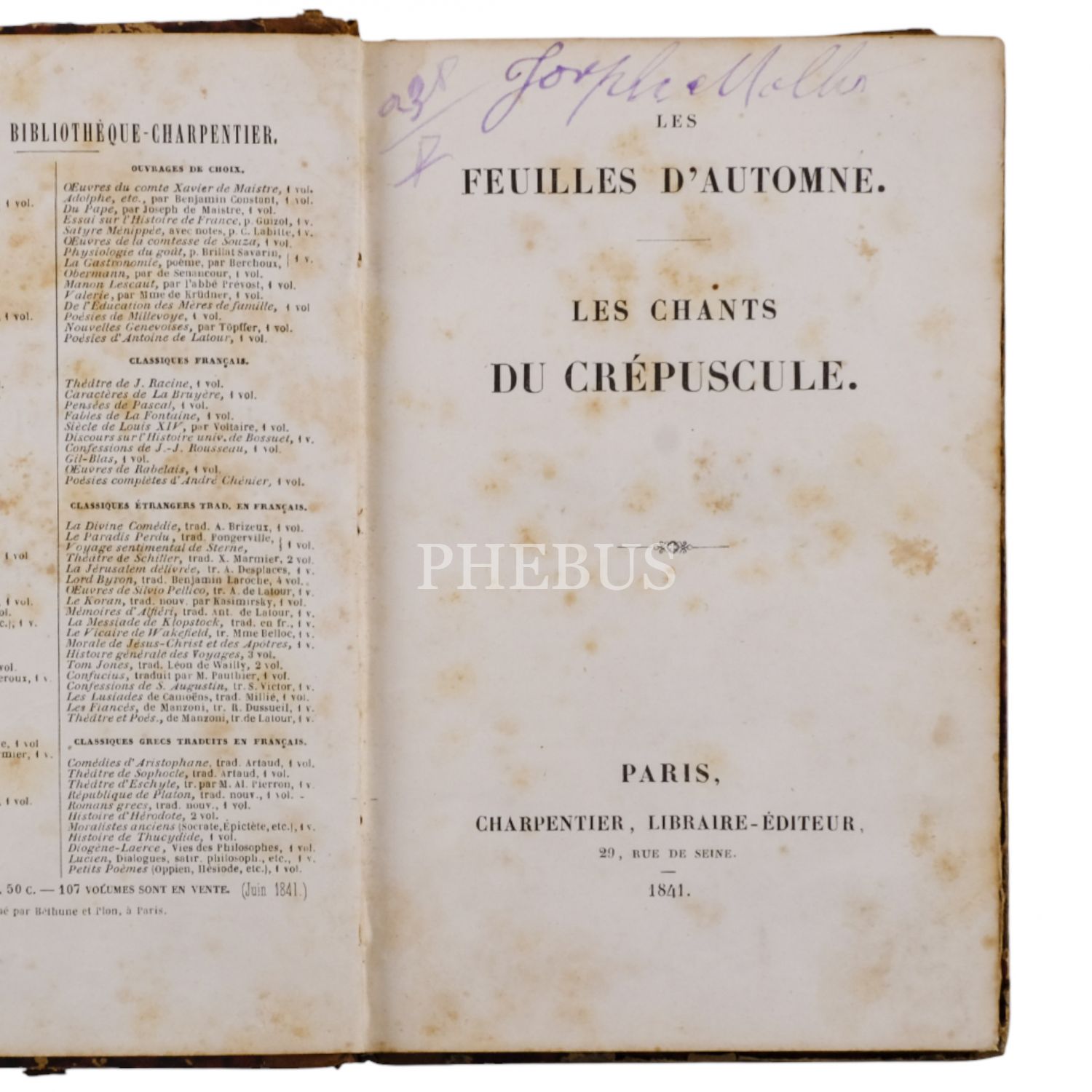 LES FEUILLES D´AUTOMNE, Victor Hugo, 1841, Librairie -Editeur Charpenter (Paris), 294 sayfa, 12x18 cm...