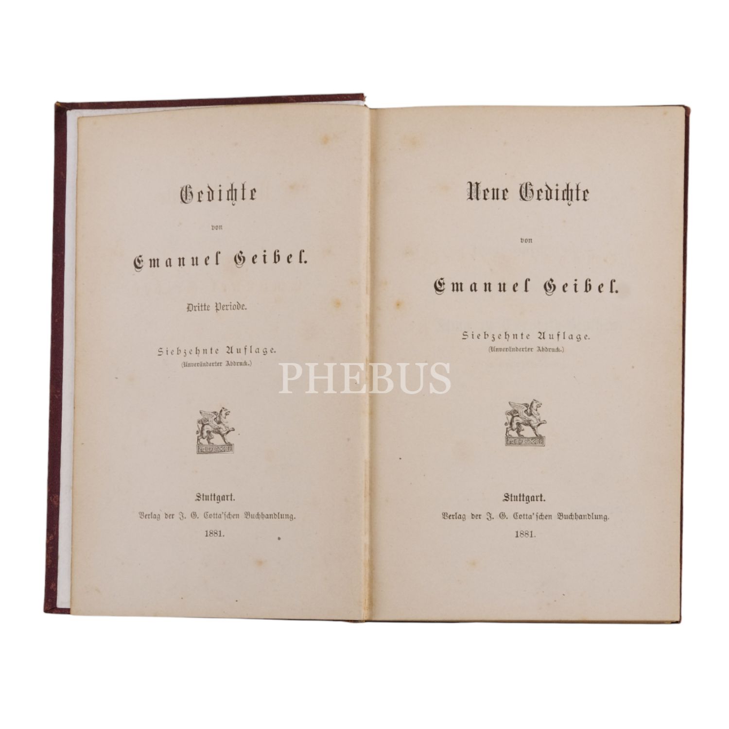 NEUE GEDICHTE, Emanuel Geibel, 1881, Verlag der Z. G. Gottaschen Buchhandlung (Stuttgart), 320 sayfa, 12x19 cm...