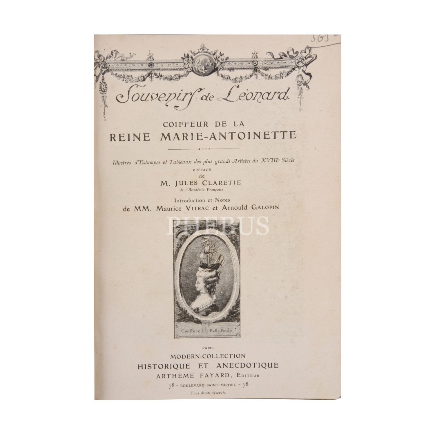 SOUVENIRS DE LÉONARD - COIFFEUR DE LA REINE MARIE-ANTOINETTE, Georges Touchard-Lafosse, Historique et Anecdotique (Paris), 142 sayfa, 17x24 cm...