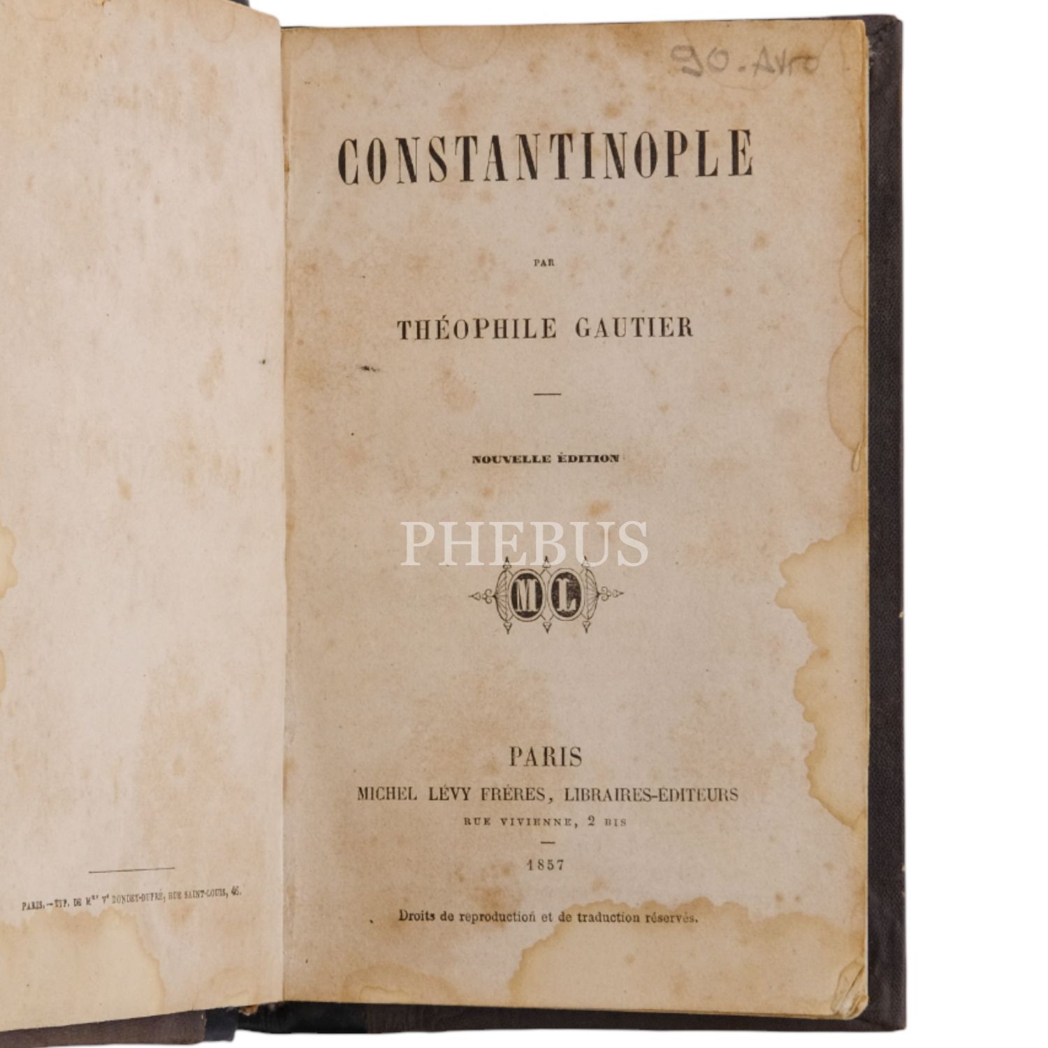 CONSTANTINOPLE, Theophile Gautier, 1857, Michel Levy Freres (Paris), 364 sayfa, 12x18 cm...