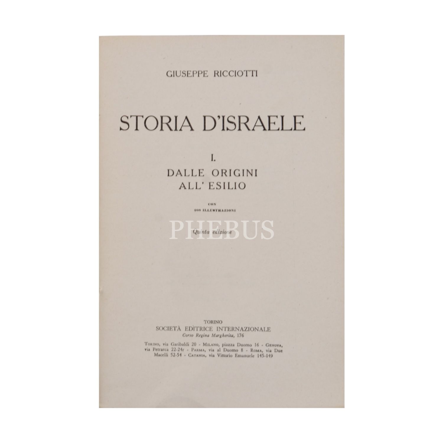 STORIA D´ISRAELE, Giuseppe Ricciotti, 1955, Societa Editrice Internazionale (Torino), 521 sayfa, 16x23 cm...