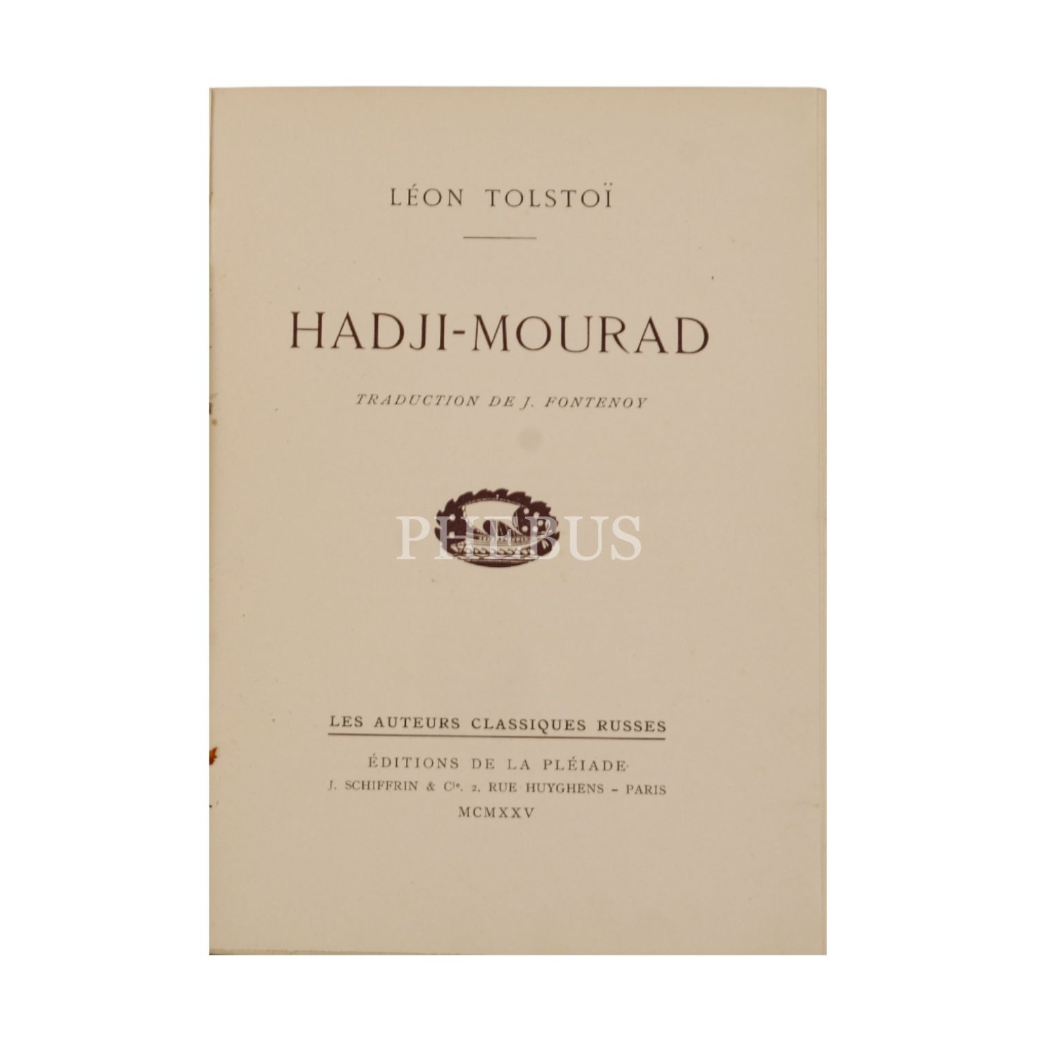 HADJI MOURAD, Leon Tolstoi, 1925, Editions De La Pleiade (Paris), 215 sayfa, 16x22 cm...