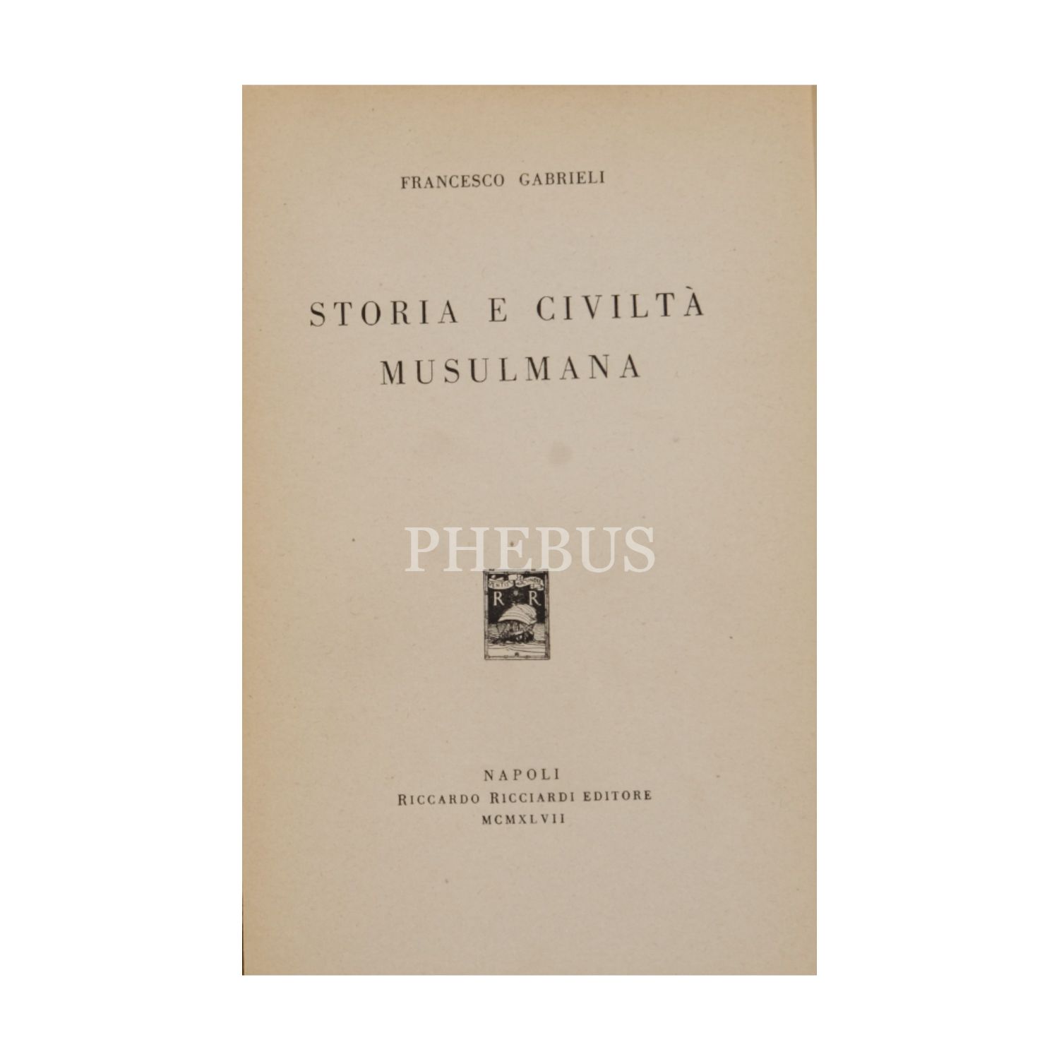STORIA E CIVILTA MUSULMANA, Francesco Gabrieli, 1947, Riccardo Ricciardi Editore (Napoli), 305 sayfa, 15x22 cm...