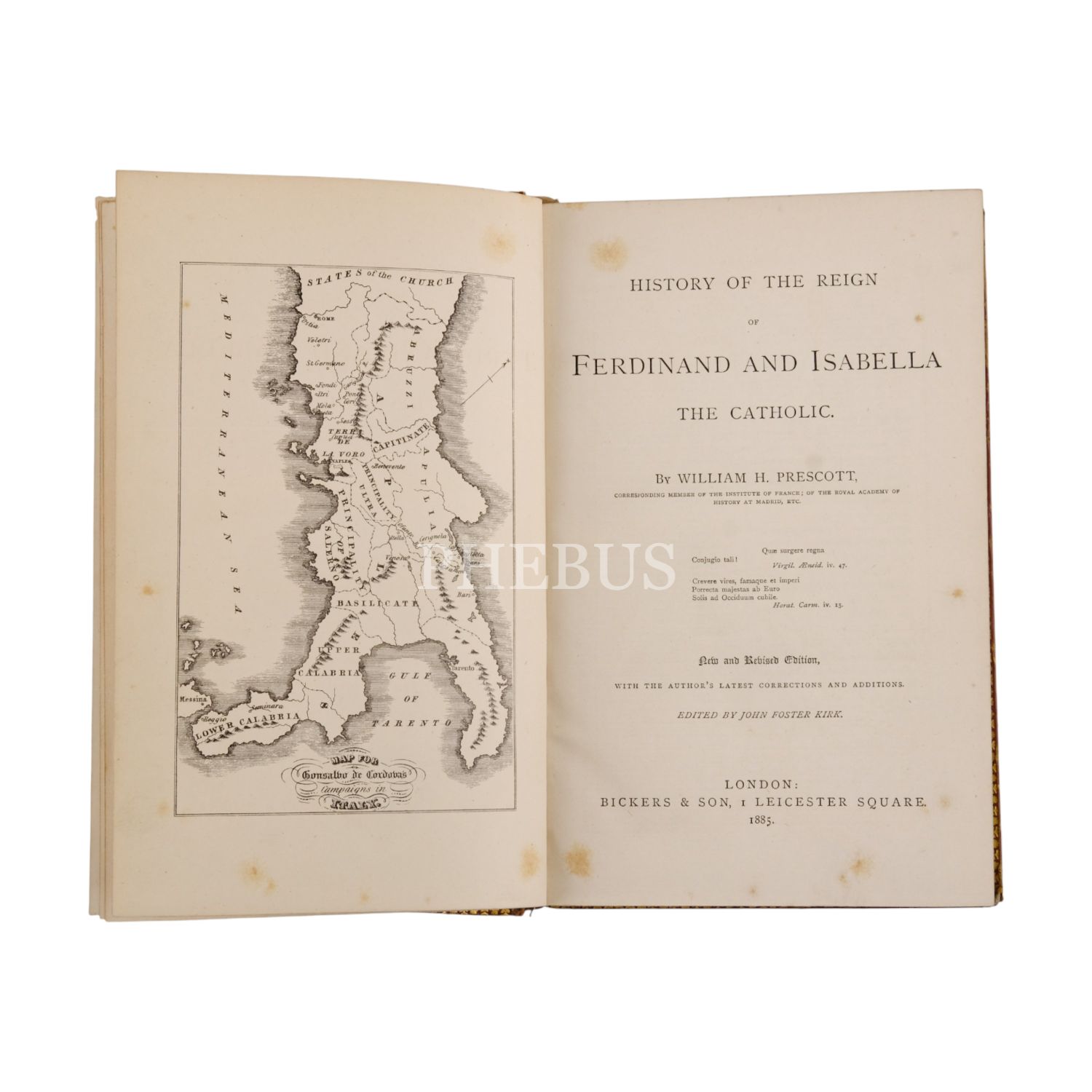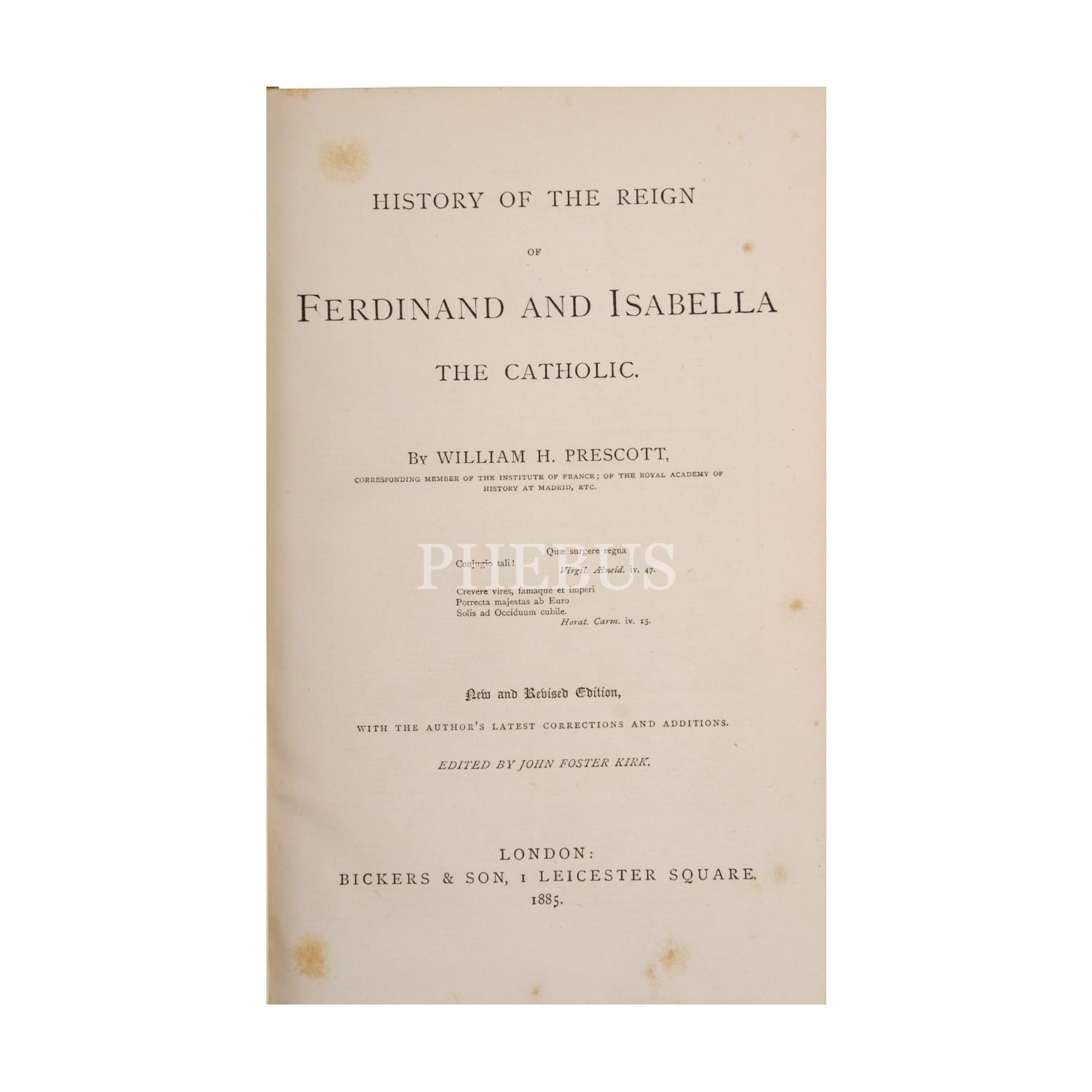 HISTIORY OF THE REIGN OF FERDINAND AND ISABELLA, William H. Prescott, 1885, Bickers & Son (Londra), 765 sayfa, 16x23 cm...