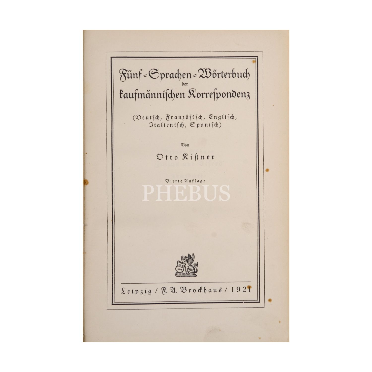 FÜNF - SPRACHEN - WÖRTERBUCH DES KAUFMANNS, Otto Kistner, 1921, F. A. Brockhaus (Leipzig), 431 sayfa, 16x23 cm...