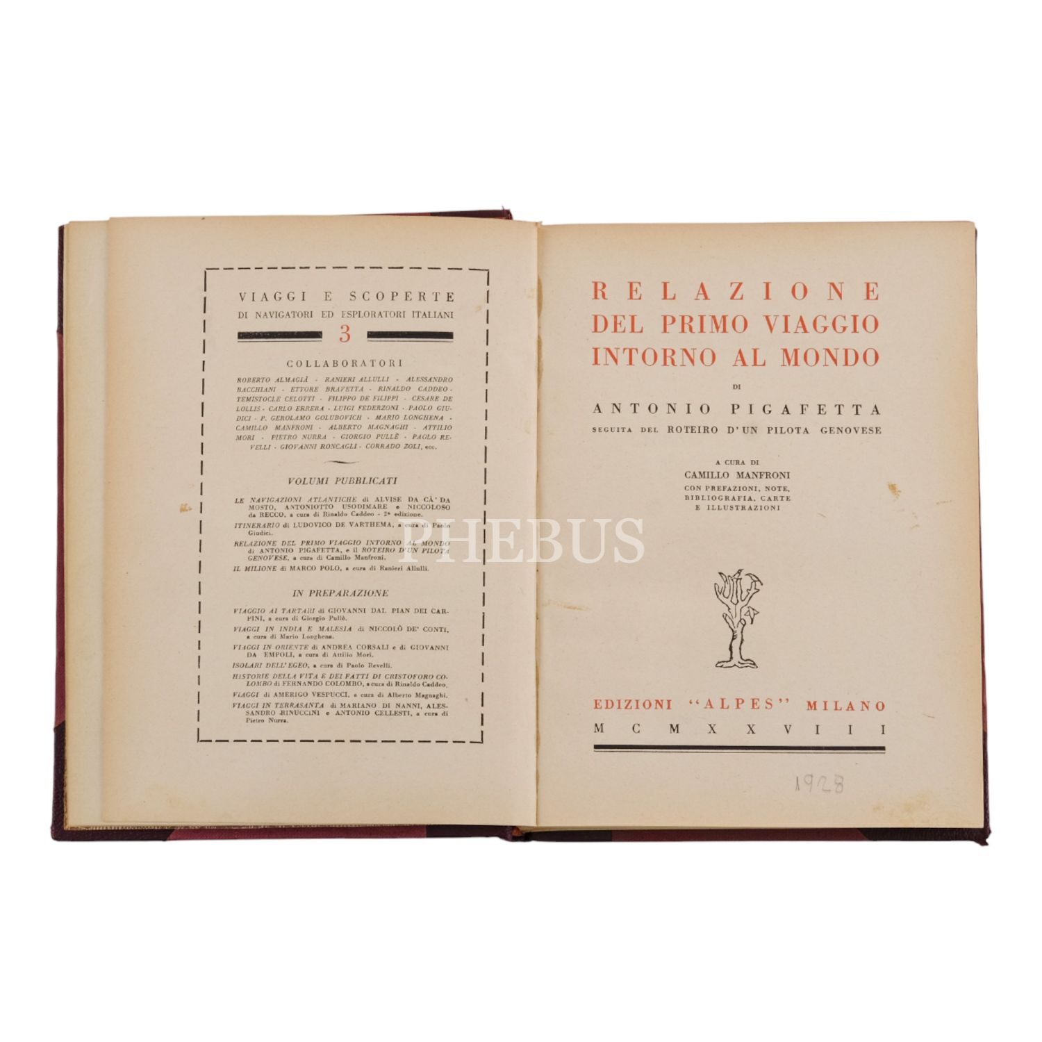 RELAZIONE DEL PRIMO VIAGGIO INTIRNO AL MONDO, Antonio Pigafetta, 1928, Edizioni Alpes (Milano), 335 sayfa, 15x21 cm...