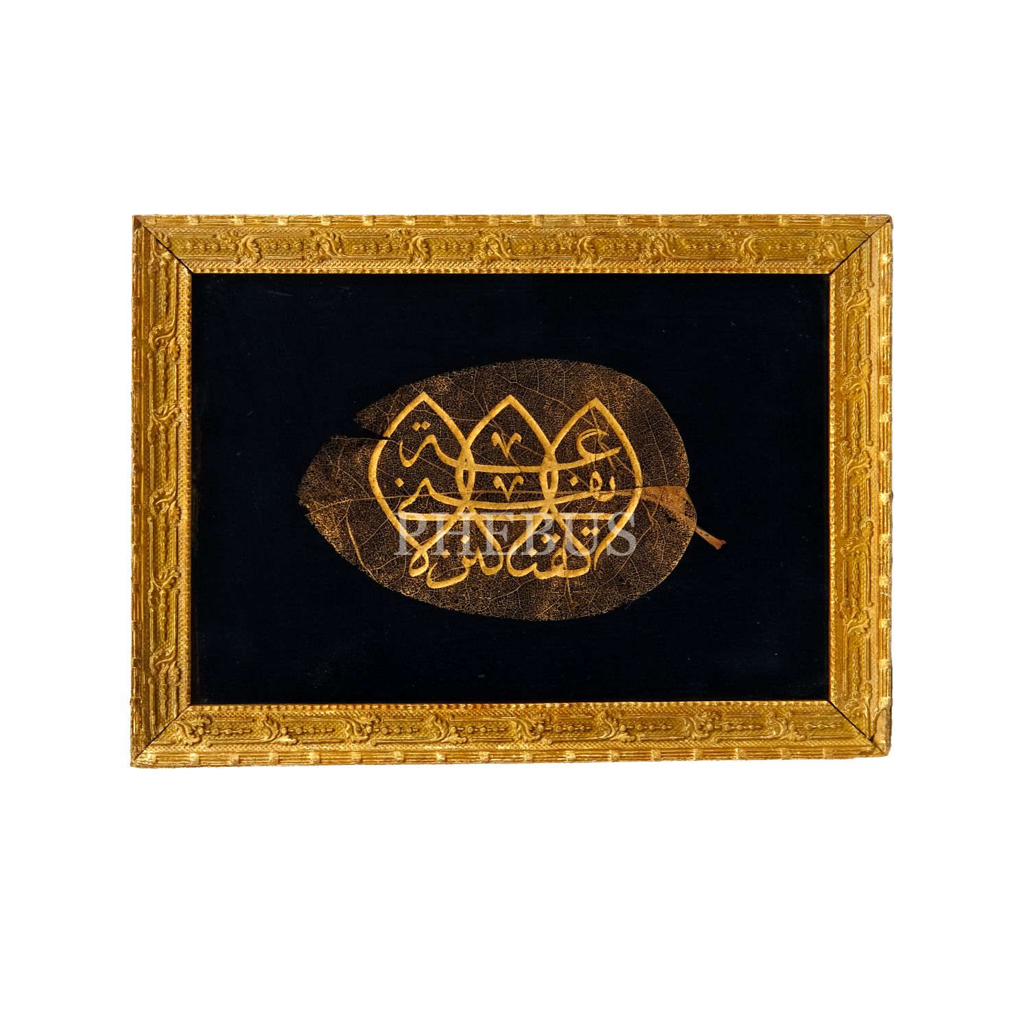 Yaprak üzerine zerendud yazı, yaprak ölçü: 16x11 cm, çerçeve ölçü: 31x23 cm...