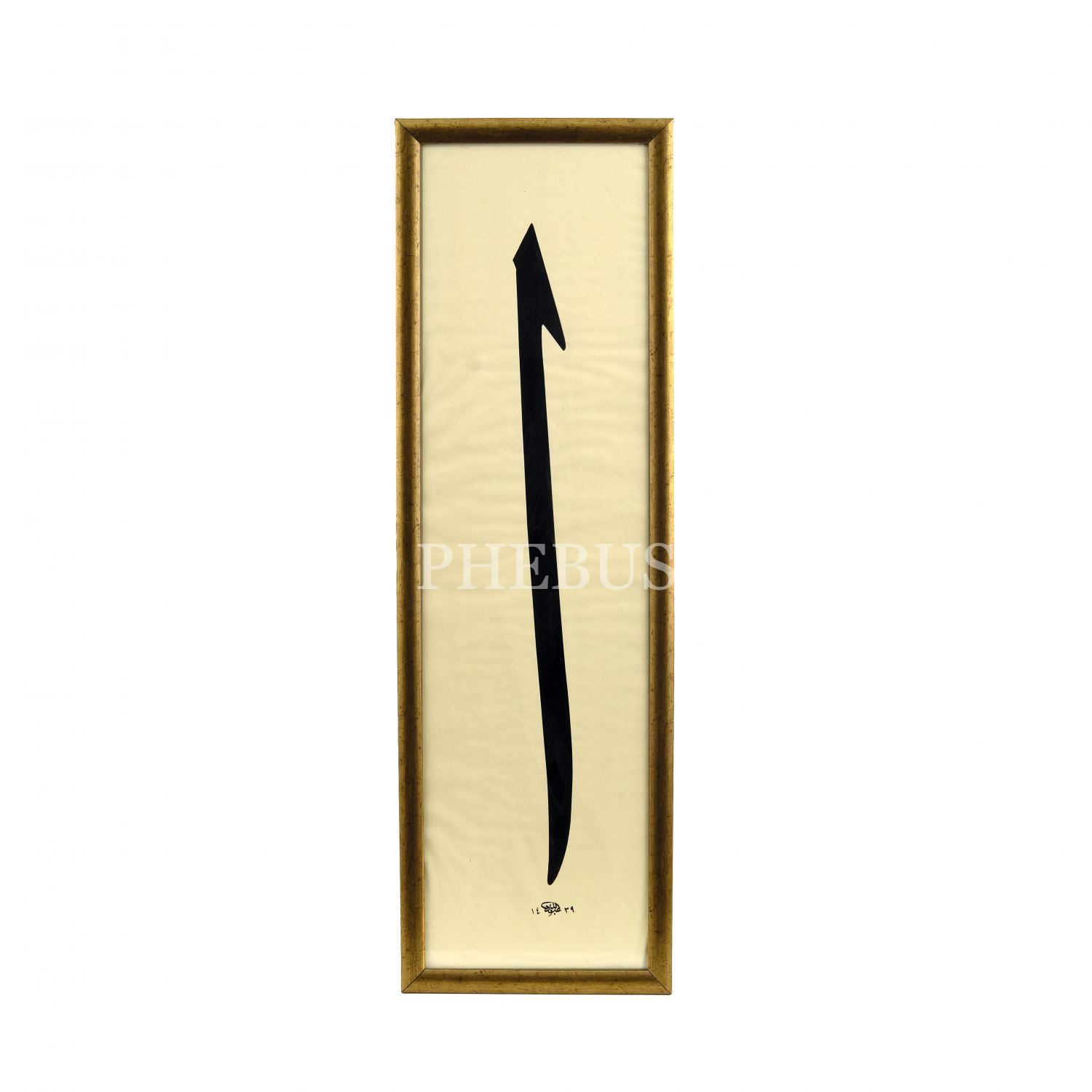 Abdullah (Gün) ketebeli celi sülüs elif, 1439 tarihli, çerçeve içi ölçü: 21x77 cm...