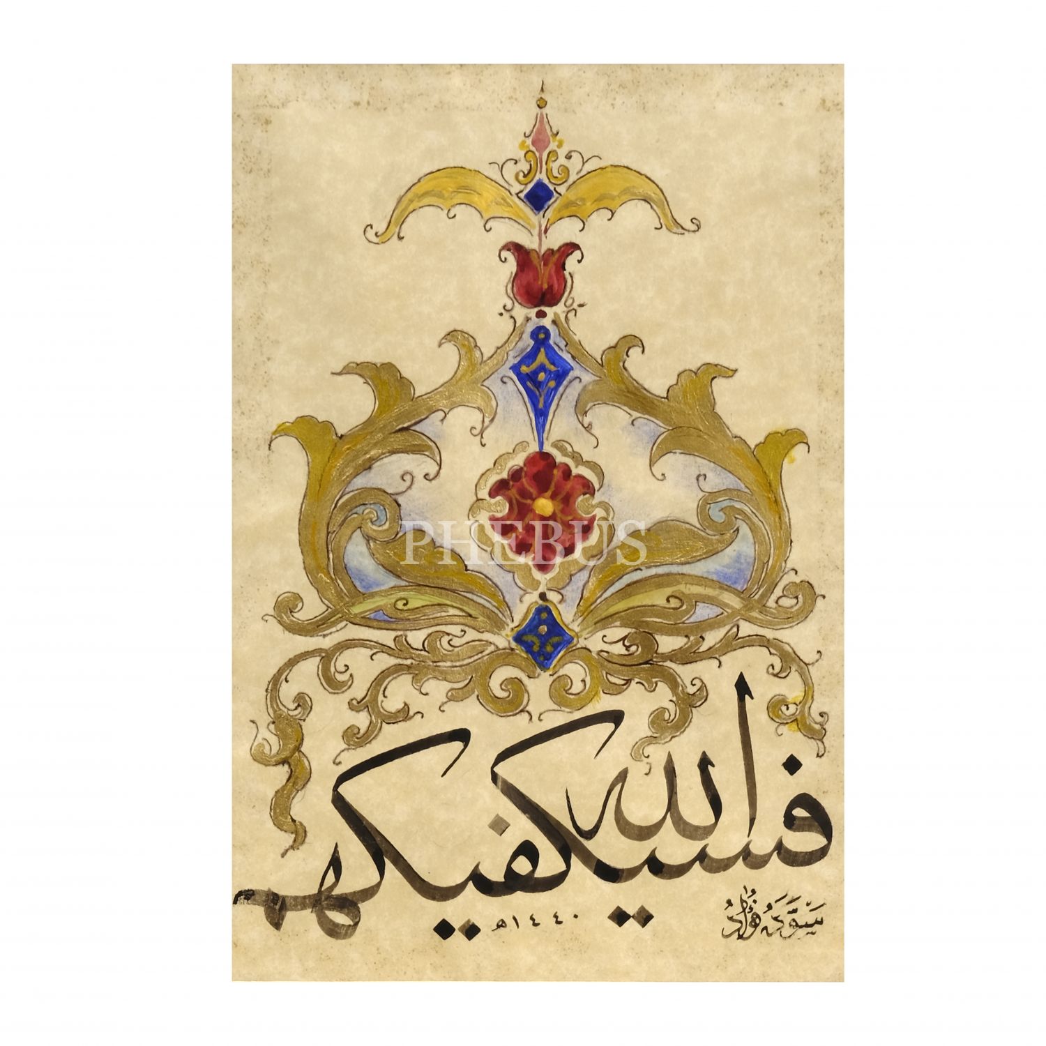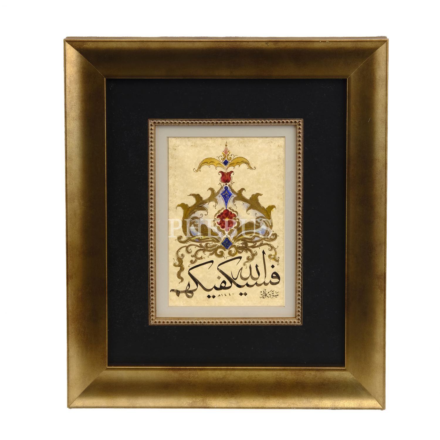 Fuad (Başar) ketebeli sülüs âyet-, 1440 tarihli, yazı ölçü: 13x19 cm, çerçeve içi ölçü: 32x26 cm...